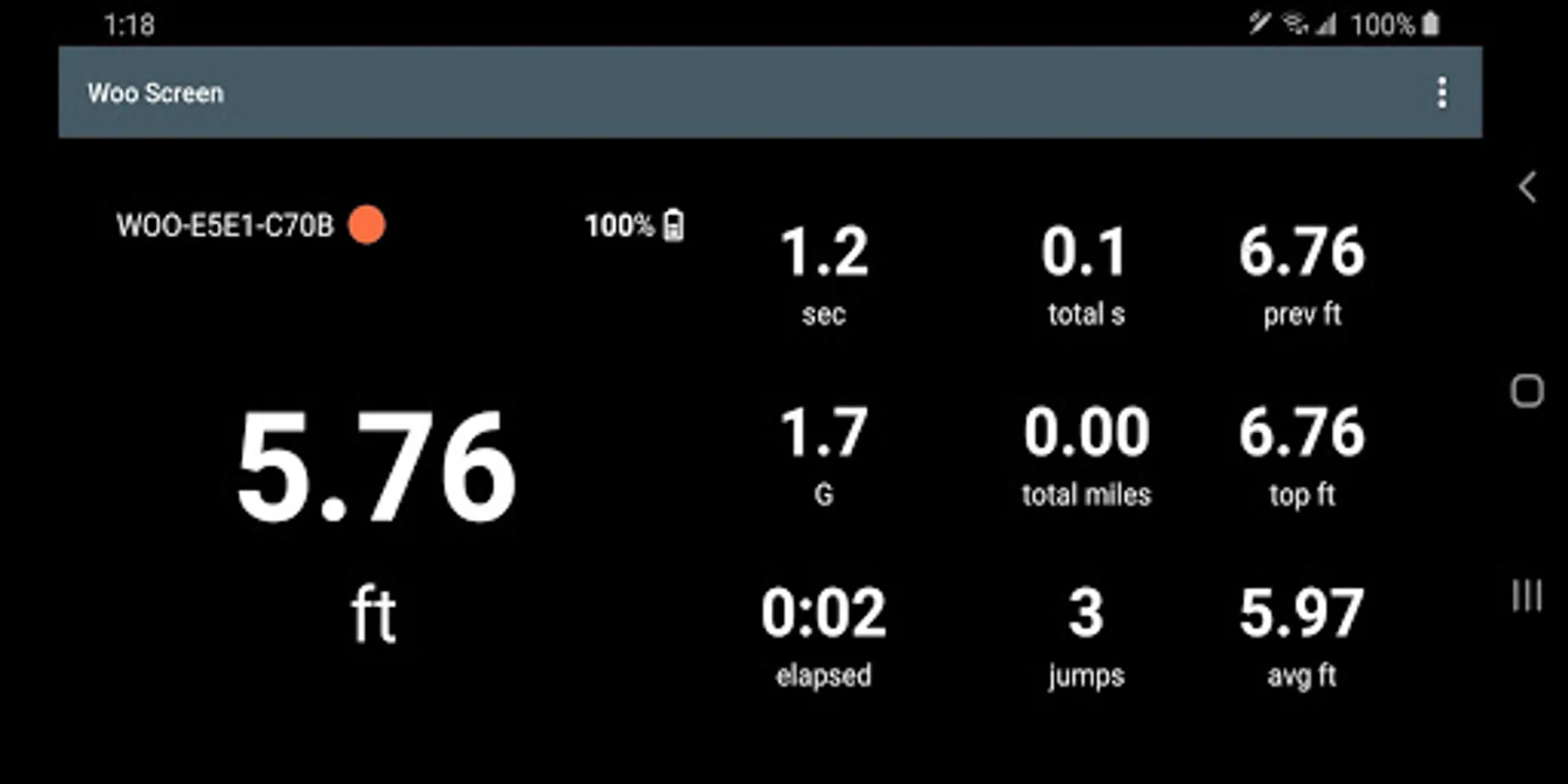 Occasionally app might show erroneous high jumps reported by WOO and displayed by this app, but filtered out by proprietary WOO algorithms in their official app or on their server. At the moment, there is no workaround for this issue.