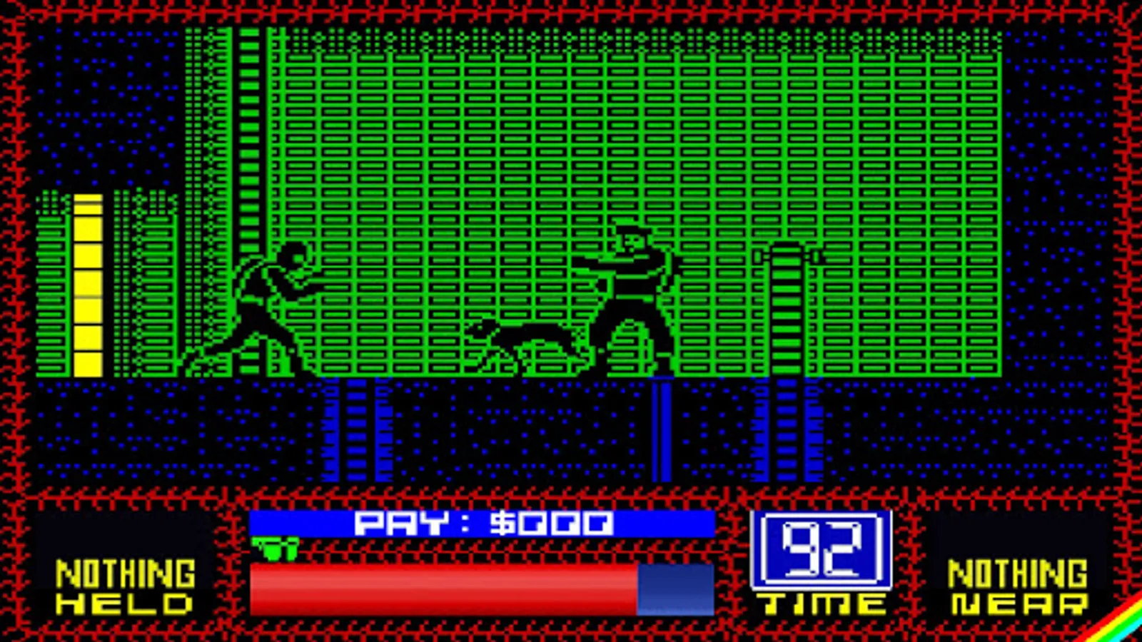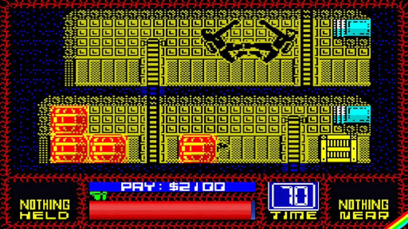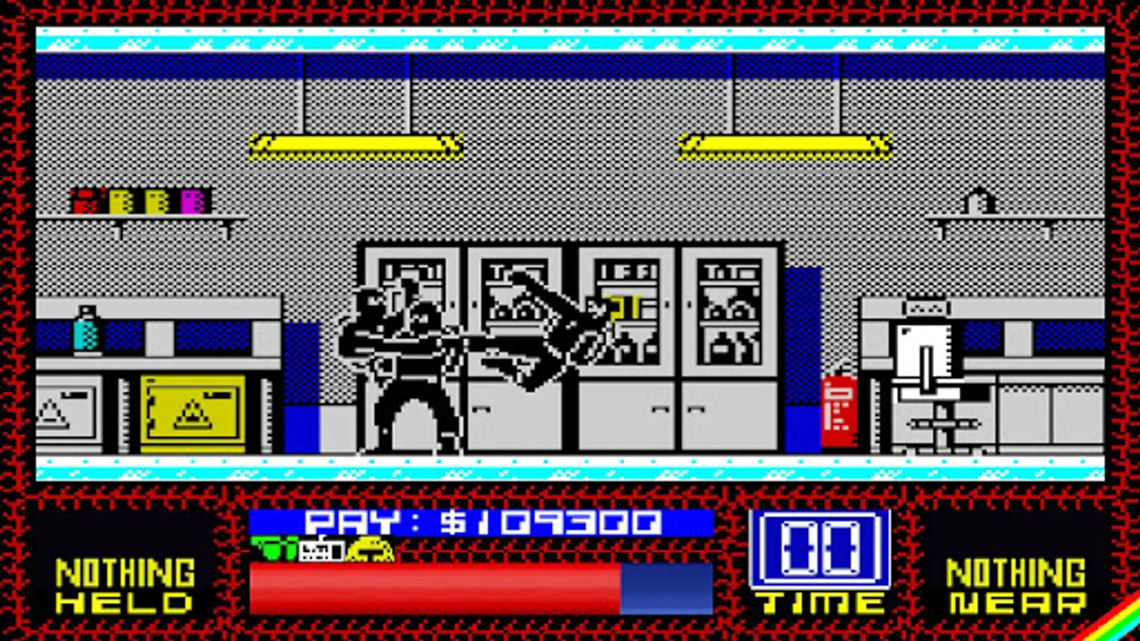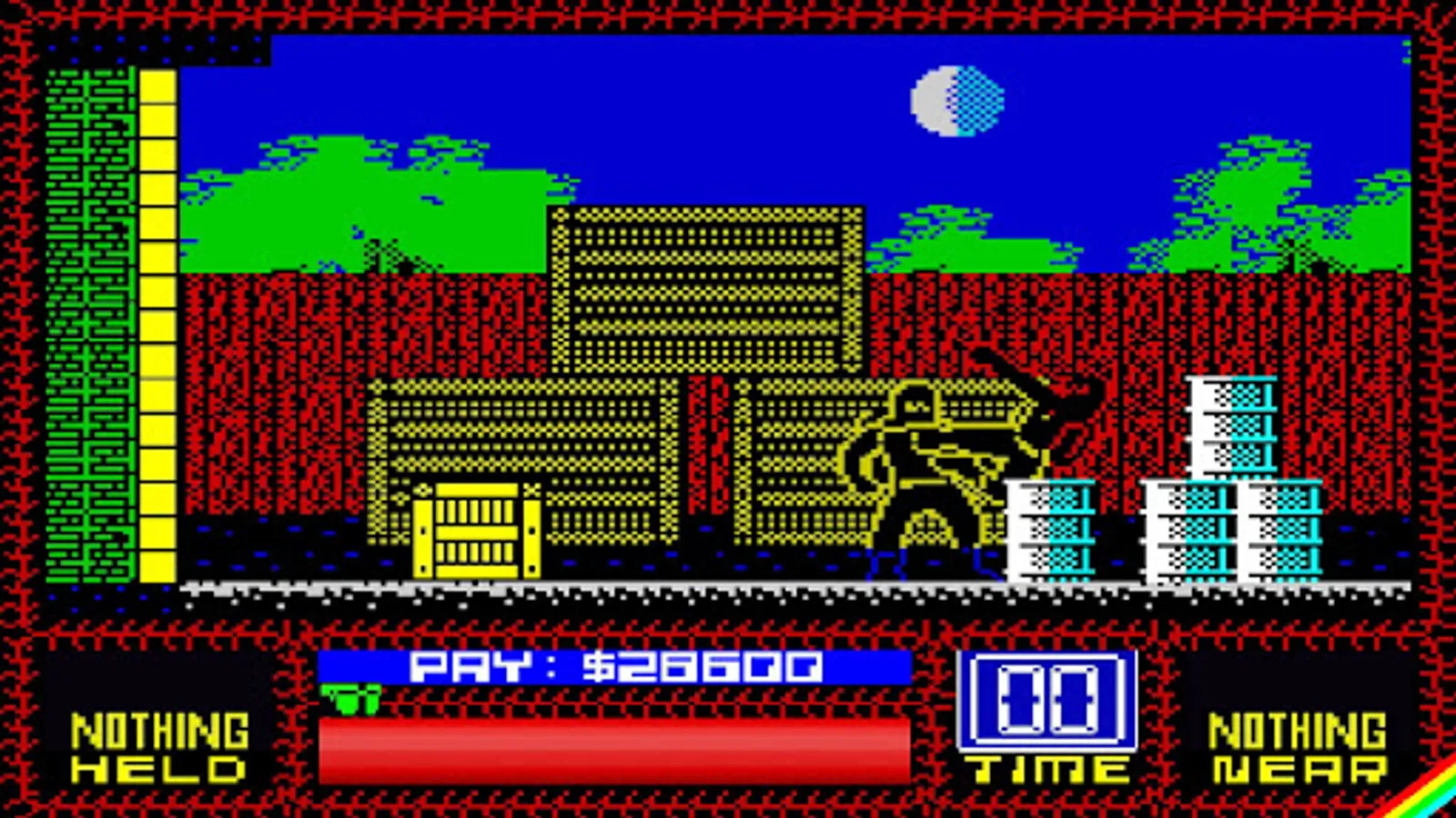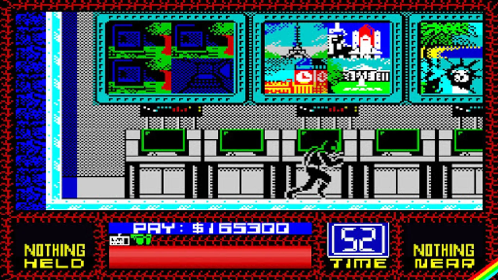 Saboteur! is the classic retro game hit made by Clive Townsend in 1985 for the ZX Spectrum 8-bit computer. In 1985 Saboteur! received the prestigious award "The Crash Smash" from Crash magazine and was high-rated with a 93% score.