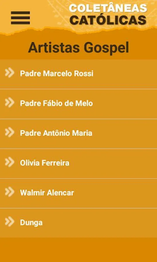 Our application provides in an organized and easy access way, songs by the main Catholic singers.