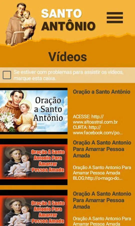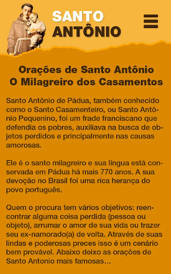 There are prayers, the story of the saint, sympathy and novena of Saint Anthony.