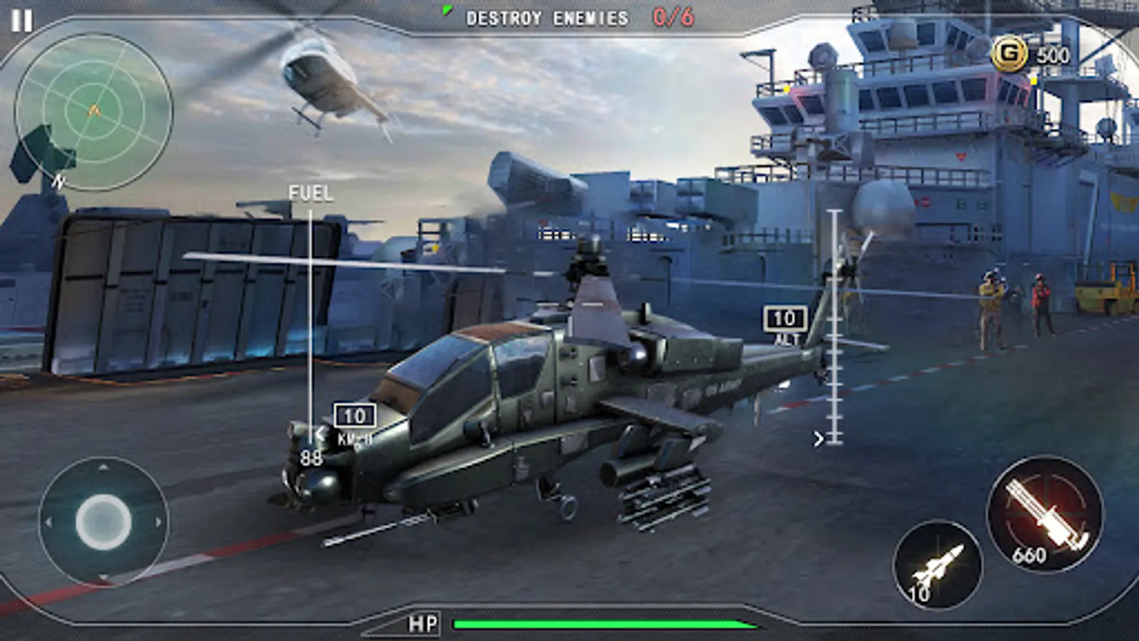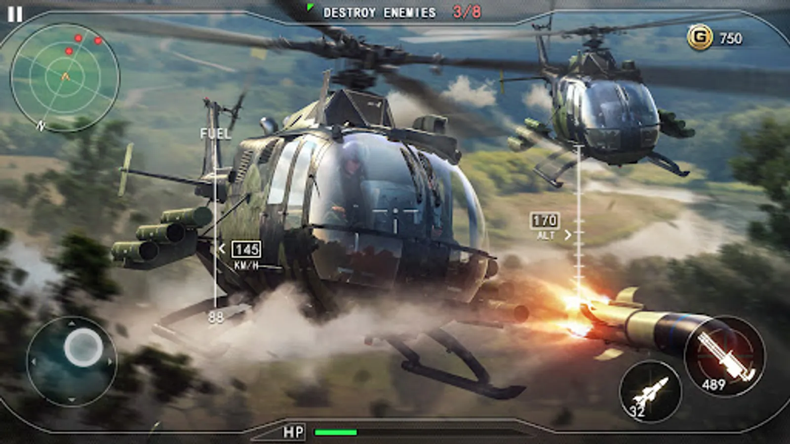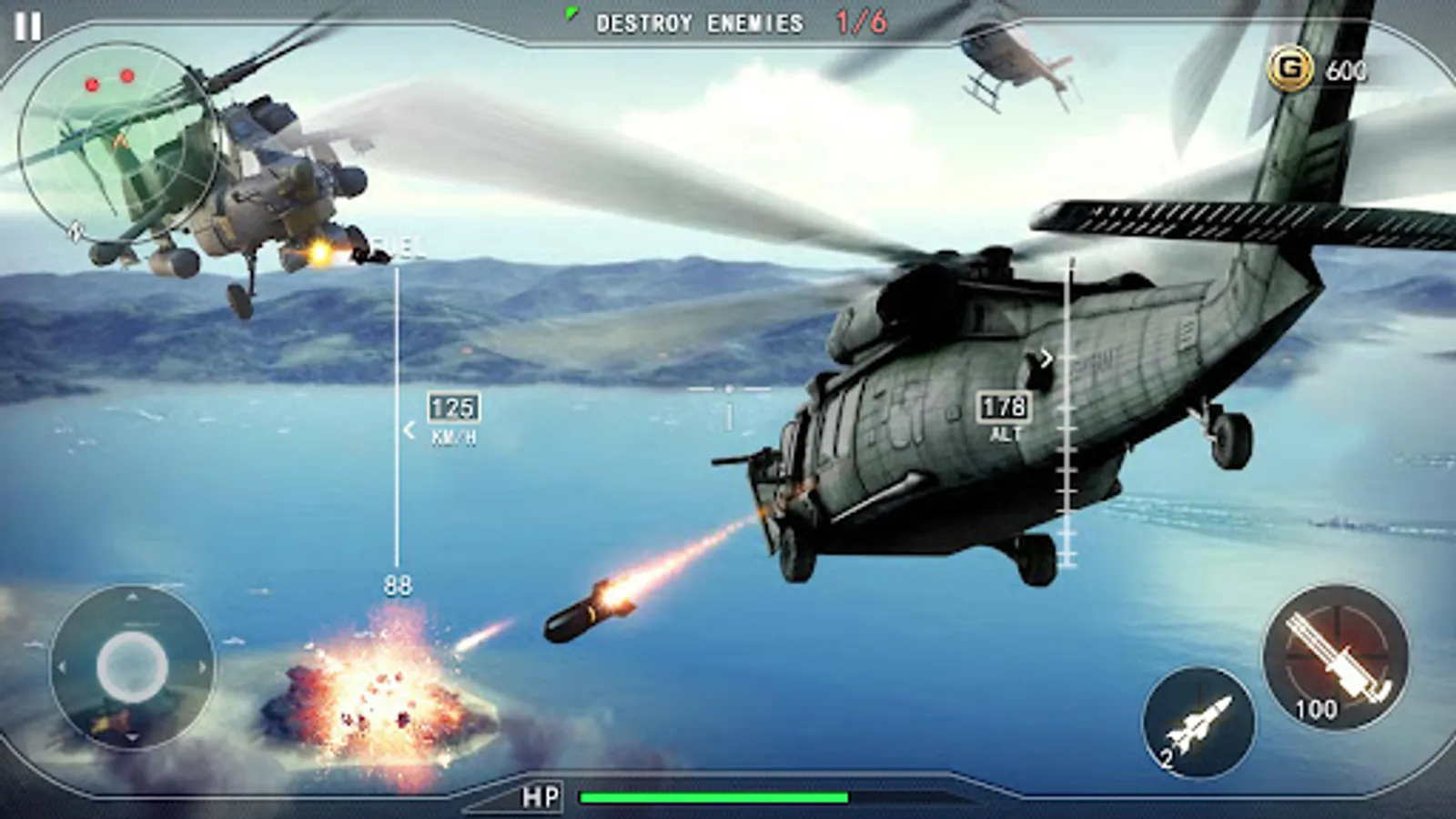 Can you handle the gunship battle in this cool 3D war planes action simulation game? Prove that you are the best pilot and best helicopter fighter. Pilot your helicopter to war. shoot, launch missiles, and destroy other helicopter gunships, complete different missions to pass levels. Earn income to purchase more powerful new helicopter!
