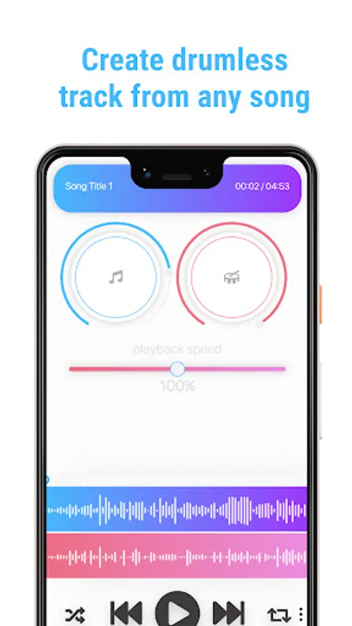 Create drumless tracks from any song or online video. You'll get 2 FREE credits and can get more credits to convert more tracks.