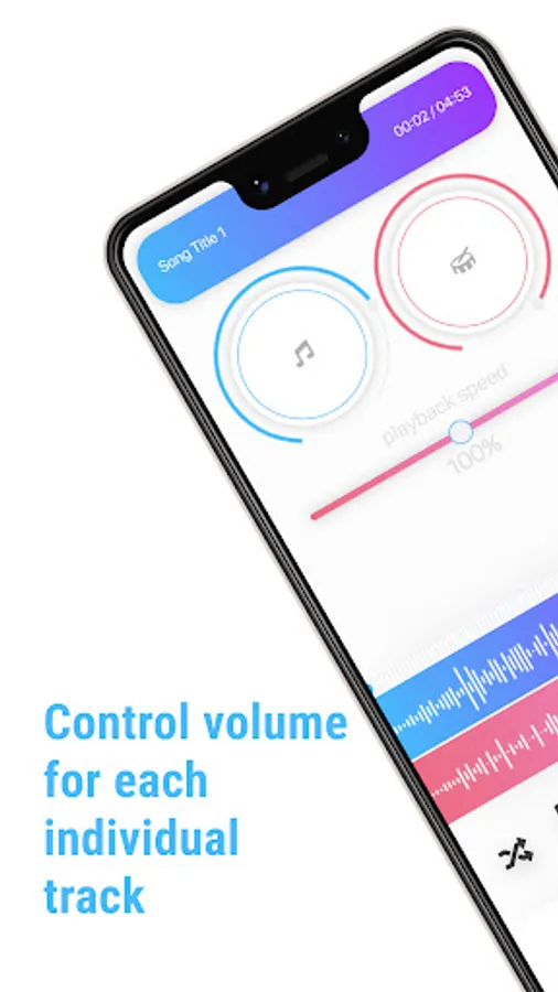 You can listen to the drumless tracks, drum beats only, or both at the same time. You can control the playback speed, shuffle, or replay tracks in the library. This is a great way to play along with the music and elevate your drum training & practice.