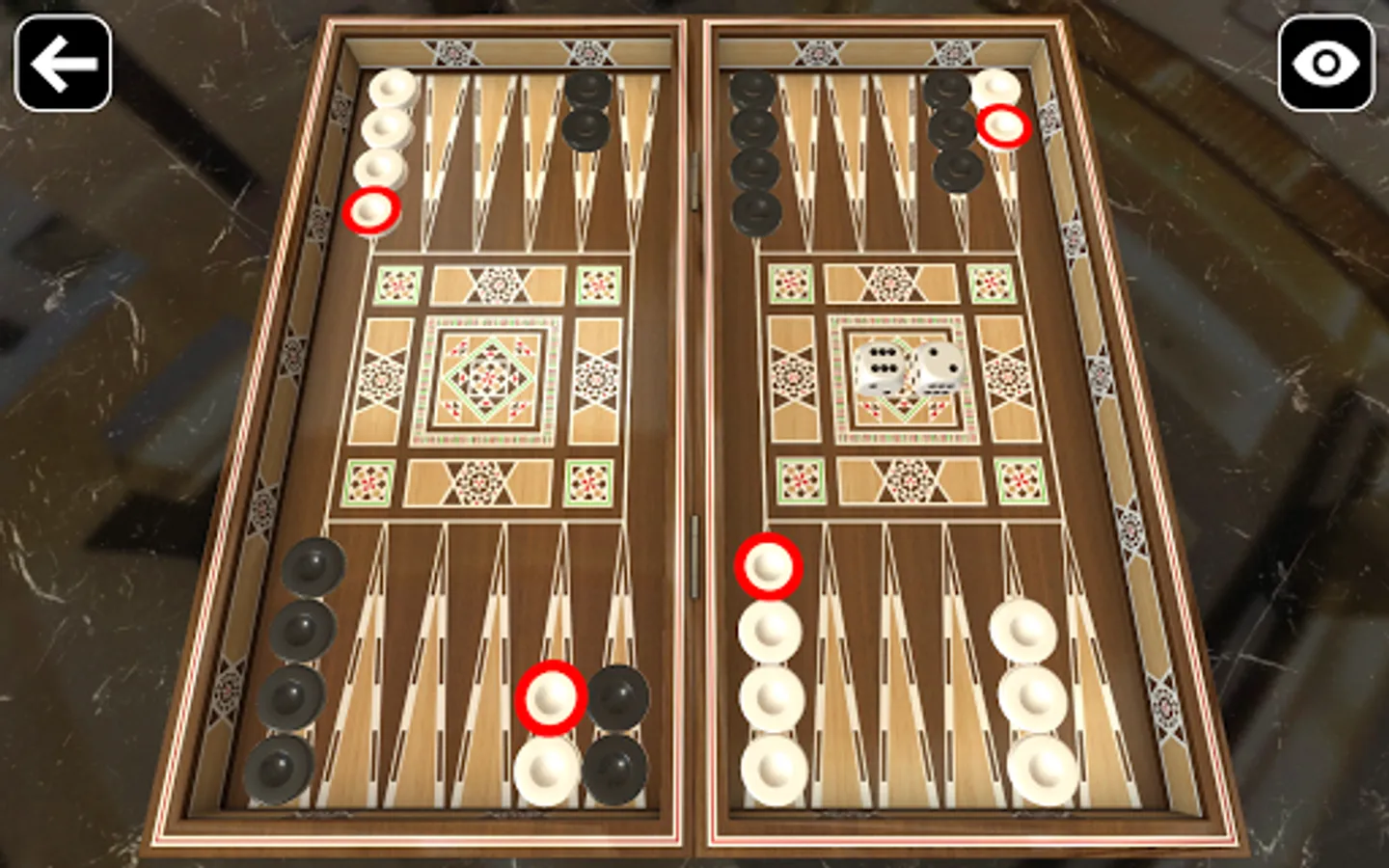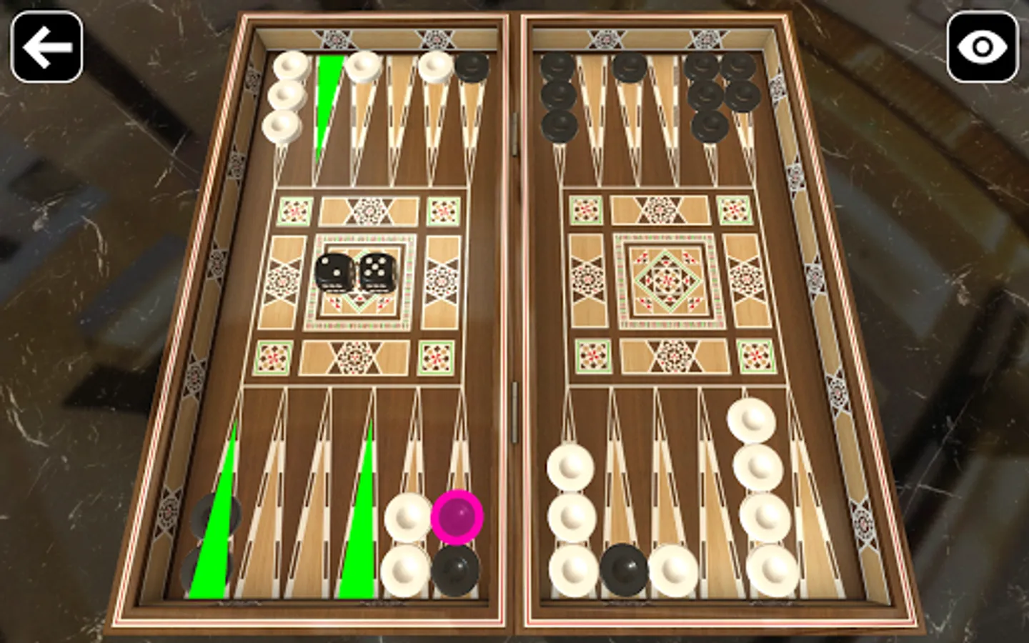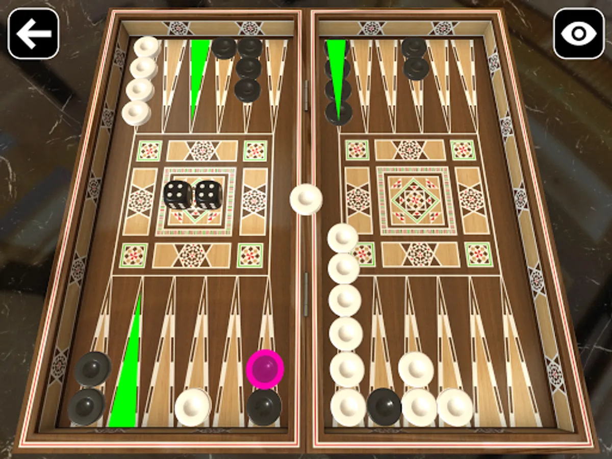 Play the traditional game of backgammon against the computer, a friend on the same device, or someone over the internet. The objective of the game is to move all of your checkers around the board, until they are all in your home. When they are all home, then you can start moving them off the board. The first player to move all their checkers off the board, will be the winner.