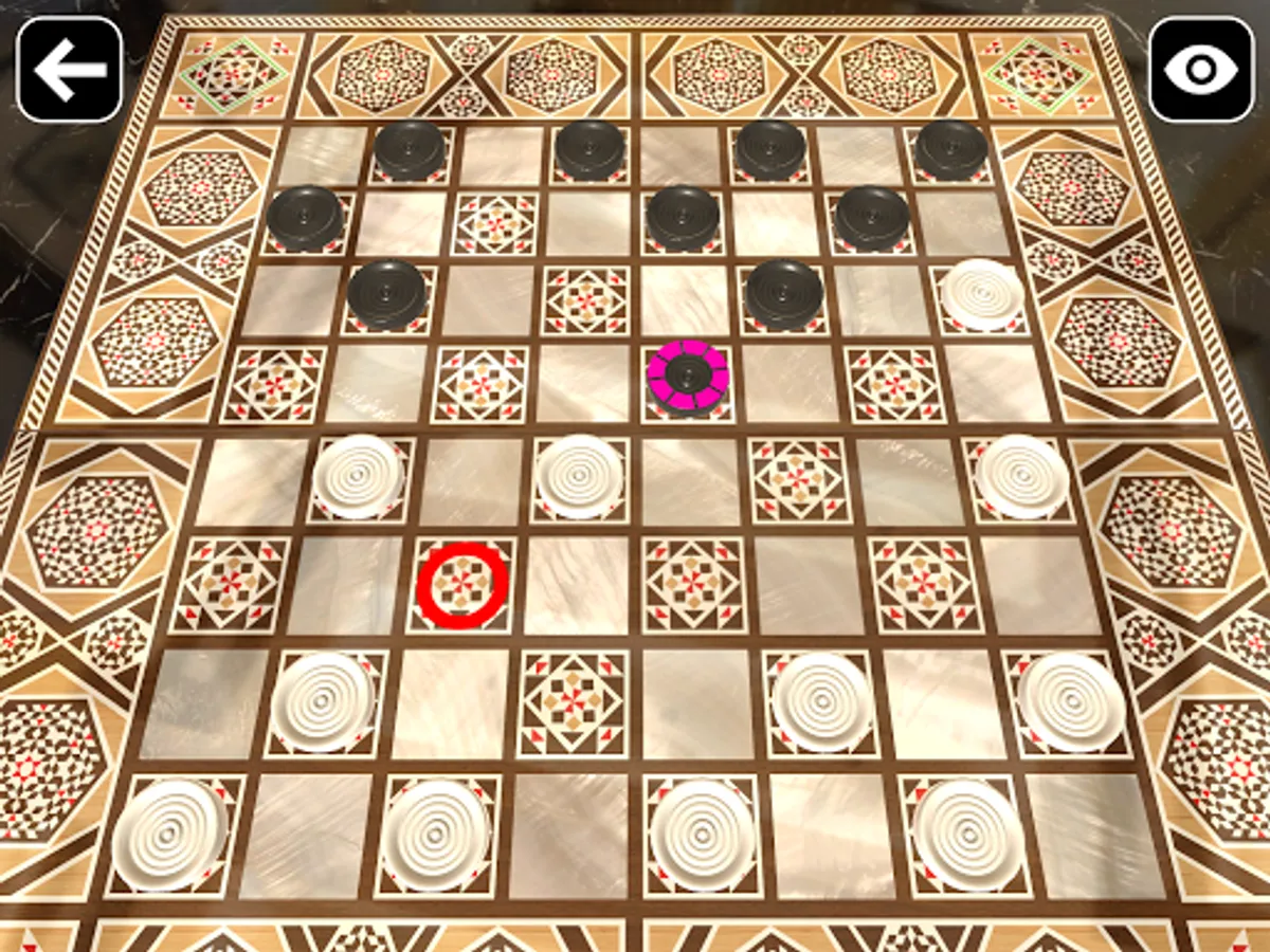 Play against the computer, a friend on the same device, or someone over the internet. To play the game, each player moves one of their checkers diagonally, one square at a time. If one of the other player's checkers is on a diagonal square next to yours, then you can capture it, if the next square behind it is empty. To win the game, you need to capture all of the other player's checkers.