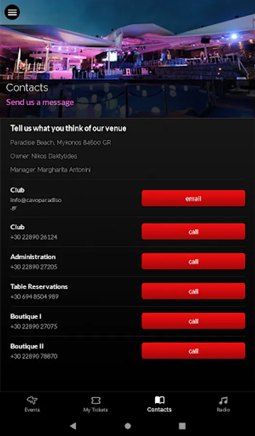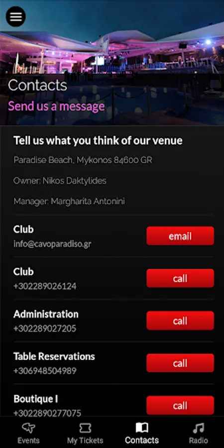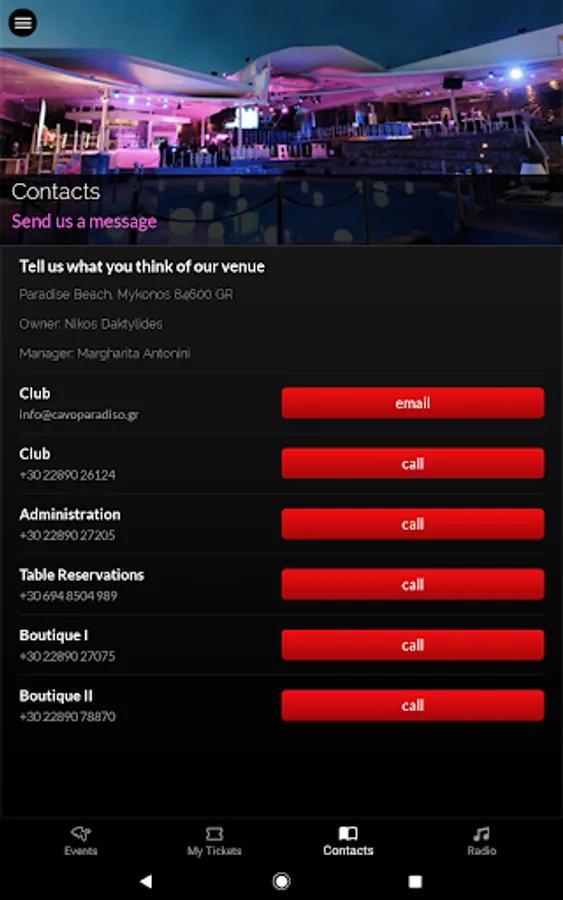 If you have any questions, comments, or suggestions, please email us at info@cavoparadiso.gr. We'd like to hear from you.