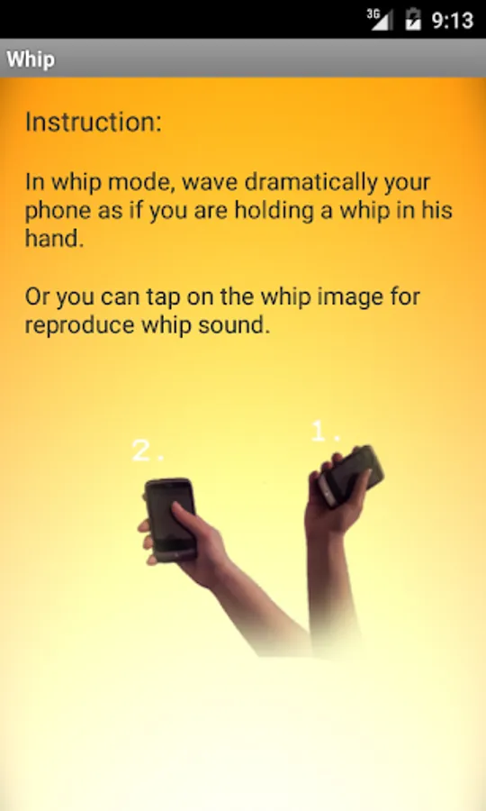This is the application with sounds effects of a whip. You can make a joke with your classmates at recess or with friends. This application produces a whip sound effect by phone movements and clicks.