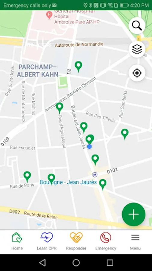 - AED location : locate the 10 closest AEDs near you or in a specific address, through the use of a live database that is updated each time you launch the application.