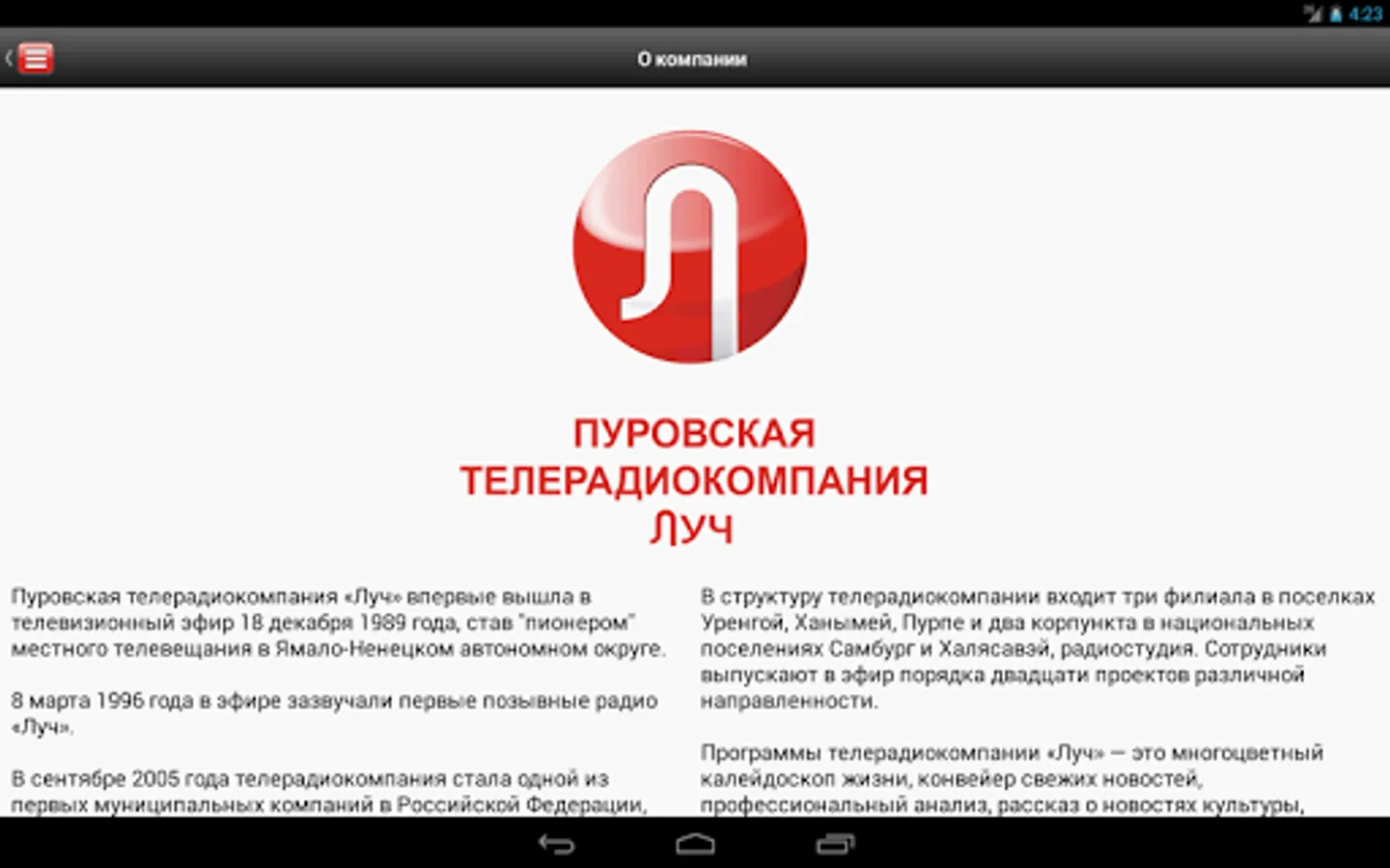 PUROVSKY Broadcasting Company "Ray" first appeared in the television broadcast Dec. 18, 1989, becoming the "pioneer" of local television services in the Yamal-Nenets Autonomous District.