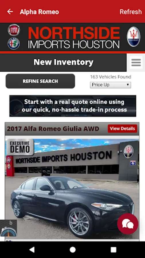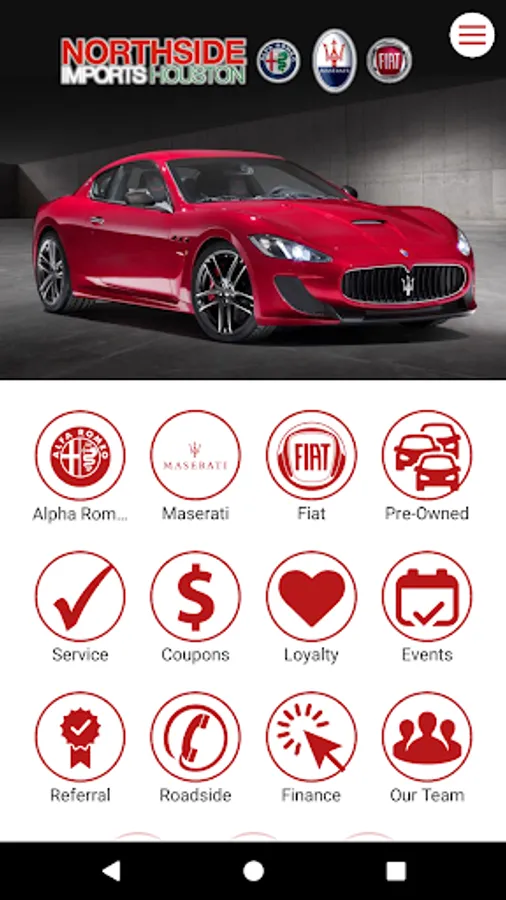 Northside Alfa Romeo Maserati mobile customer engagement app provides customers with an enhanced dealership mobile experience. The app uses background geo-location for geo-fencing and geo-targeted push notifications to provide customers with relevant specials and loyalty offers. The app also delivers a wide range of features/benefits to customers, including service scheduling, viewing new and used inventory, redeeming mobile offers, sharing dealer promotions, viewing special events, contacting roadside assistance, booking a test drive, and contacting staff directory.