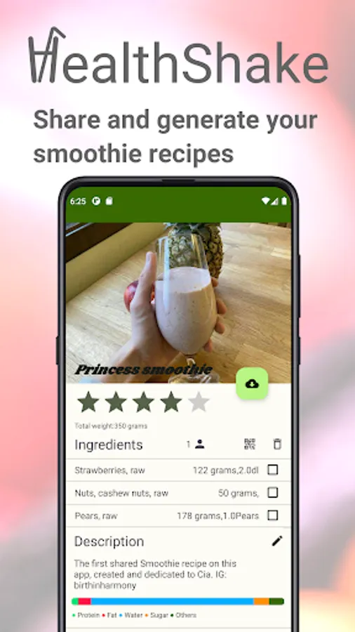 HealthShake Smoothie Recipe is built to allow you to create unlimited delicious smoothie recipes after your personal nutritional requirements, analyse your recipes on a nutritional basis as well as easily sharing them over simple QR codes.