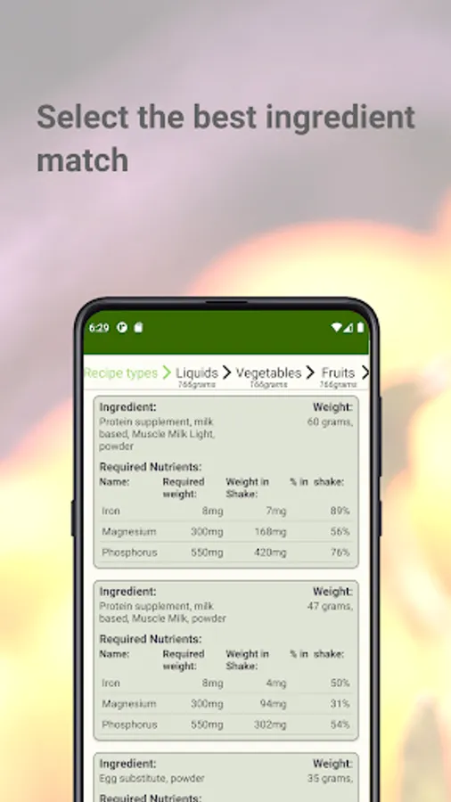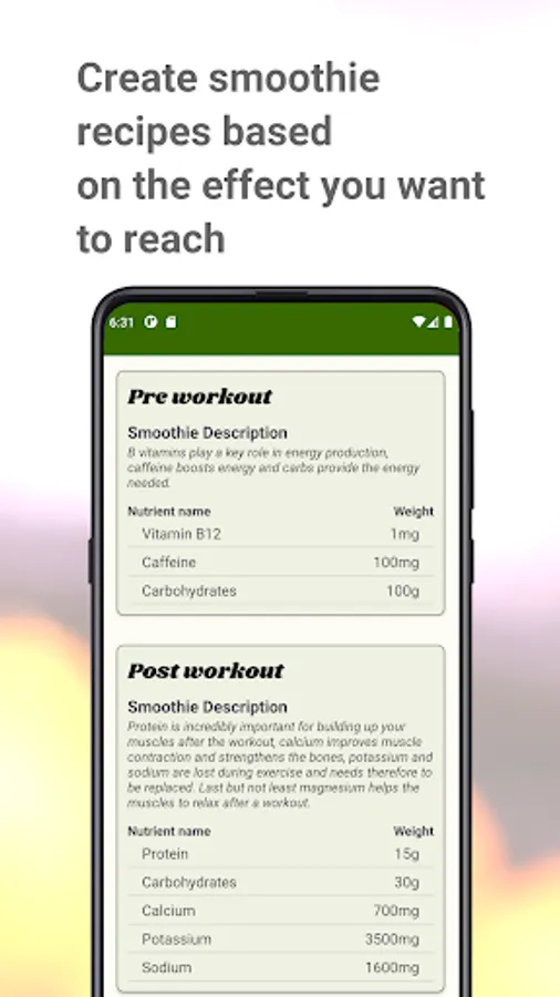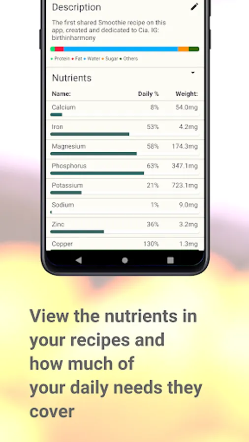 This free smoothie recipe app allows you to be in control of your own nutrition without having to ask a dietician every time you want to know what nutrients you actually get from your food.