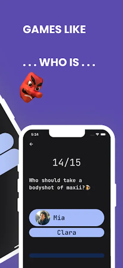 The classical game mode has been inspired by drinking games in the style of truth or dare, gather your friends and let the fun begin! The app presents fun and dirty questions similar to would you rather such as "Who has the group's hottest mom?" or "Whos most likely to streak in public?" Participants can cast their votes, revealing the group's decision in a hilarious and sometimes embarrassing way. With each vote, the app becomes a catalyst for exposing secrets and unveiling hidden truths among friends, making it an extremely fun adult game. Brace yourself for a night filled with laughter, surprises and a closer bond with your party crew.