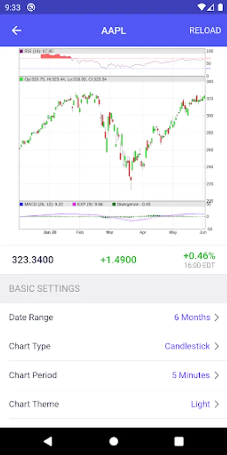 ■ Advanced Chart with dozens of Technical Indicators, Fibonacci lines, Moving Averages, Pivot Point, Price Bands, Overlay Bars