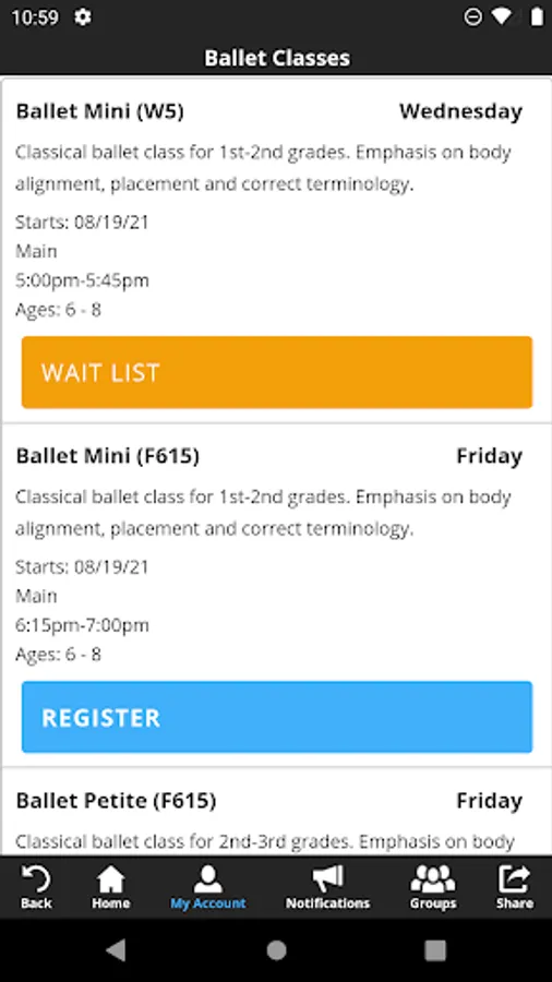 - Have a class in mind? Search by program, level, day, and time. You can register or even put yourself on a wait list.