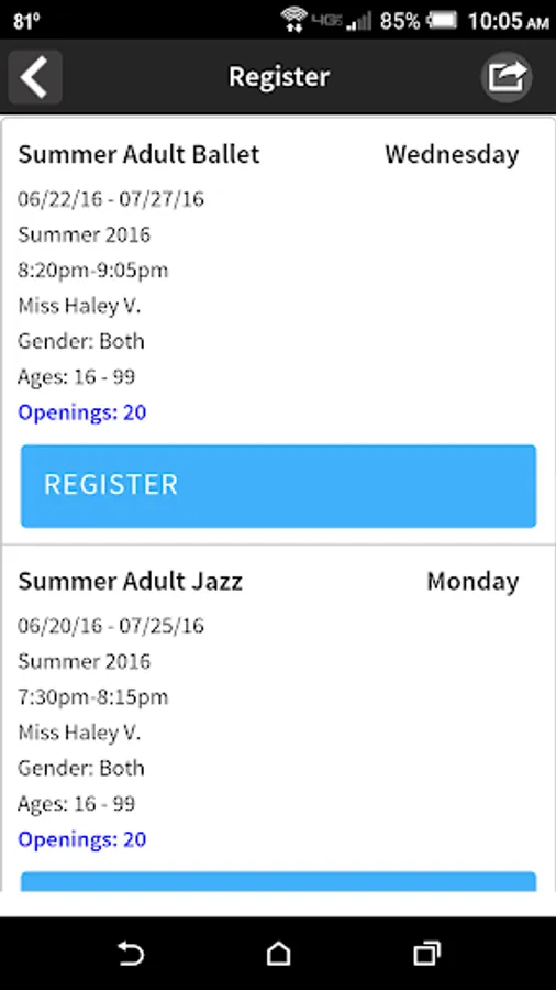 - Have a class in mind? Search by program, level, day, and time. You can register or even put yourself on a wait list.