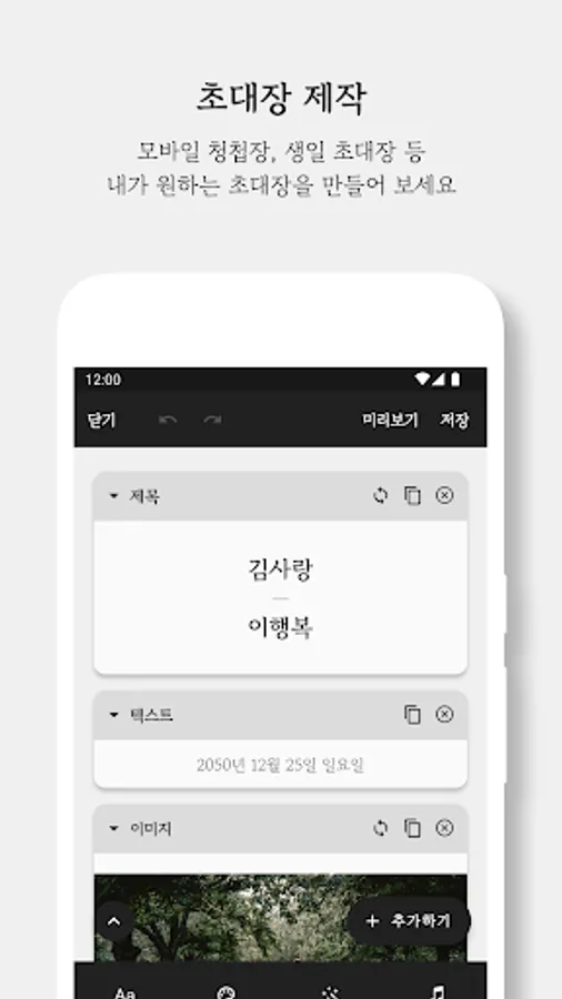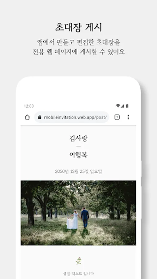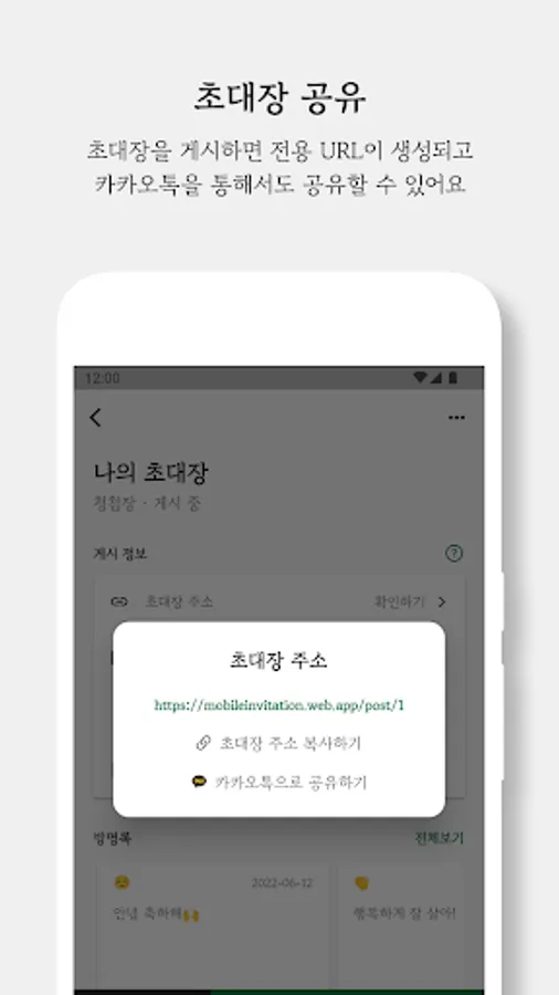 By using the KakaoTalk message sharing function, you can share the invitation's image, title, and description with a preview.