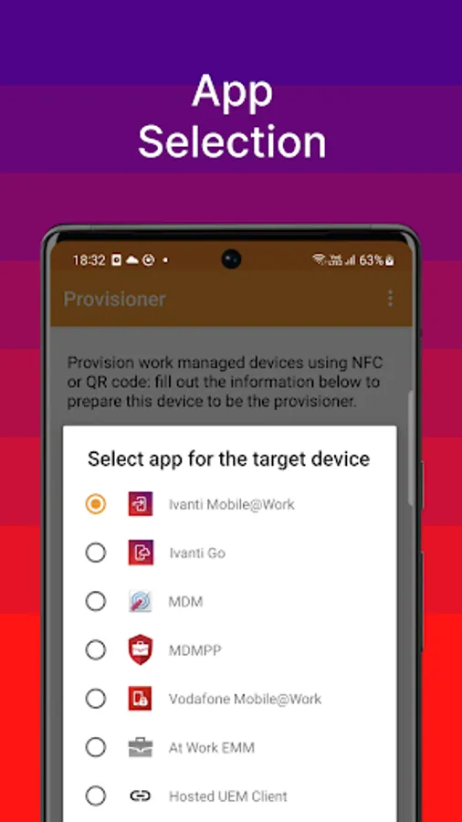 This app allows administrators to enroll devices with NFC or QR code enrollments.