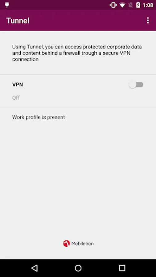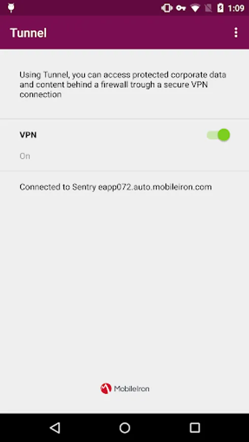 • Note: Tunnel works in conjunction with a MobileIron Core & Sentry server deployed by your company’s IT organization.