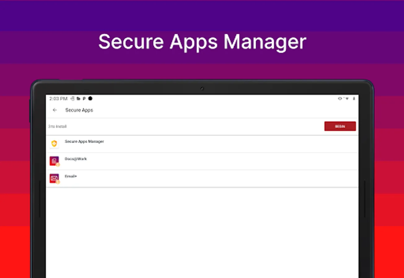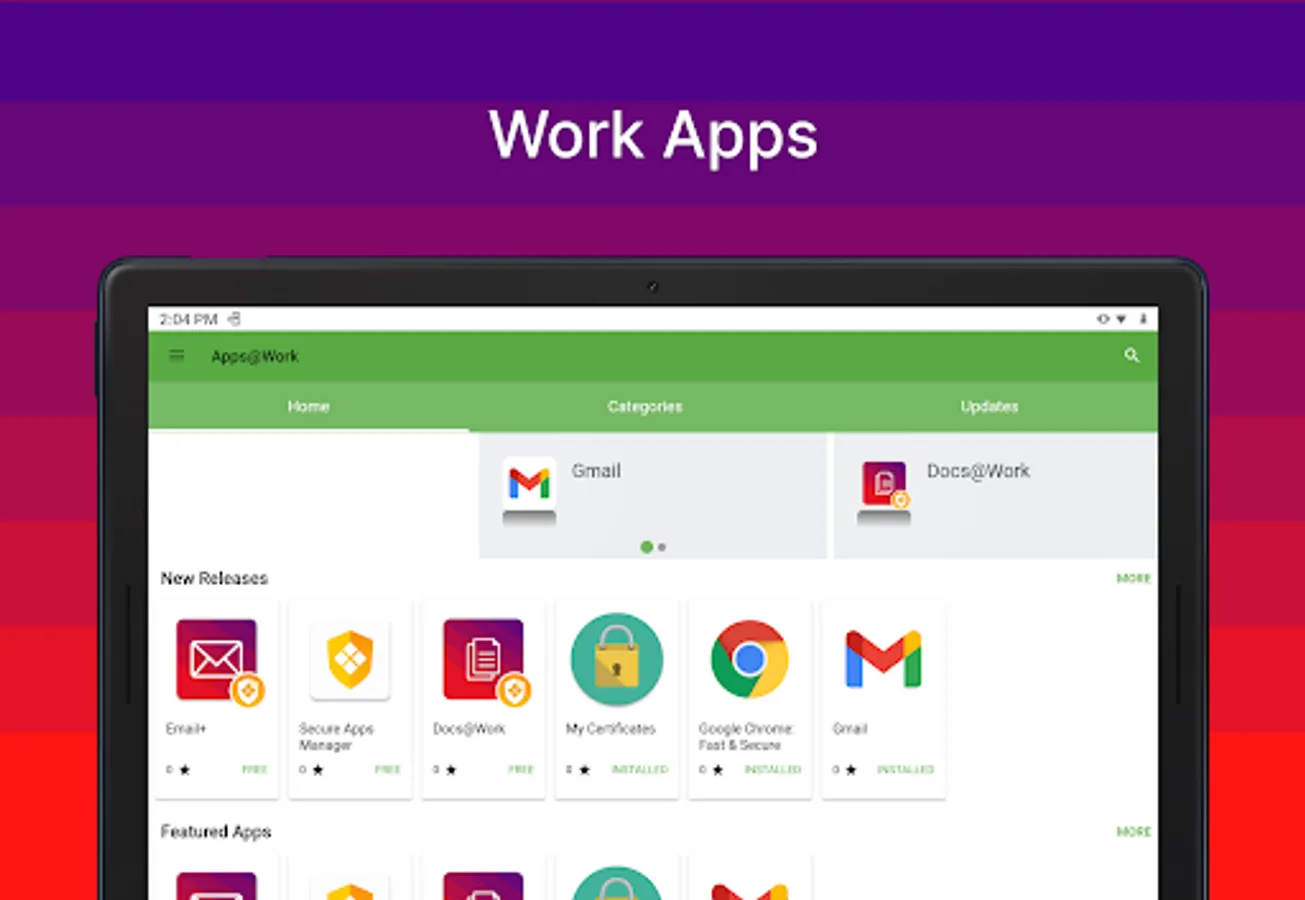 ► EASY: Discover and install work related applications on your device wherever you are.