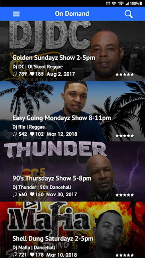 Gives u a list of the latest songs, Jamrockone shows & mixes to play on-demand
