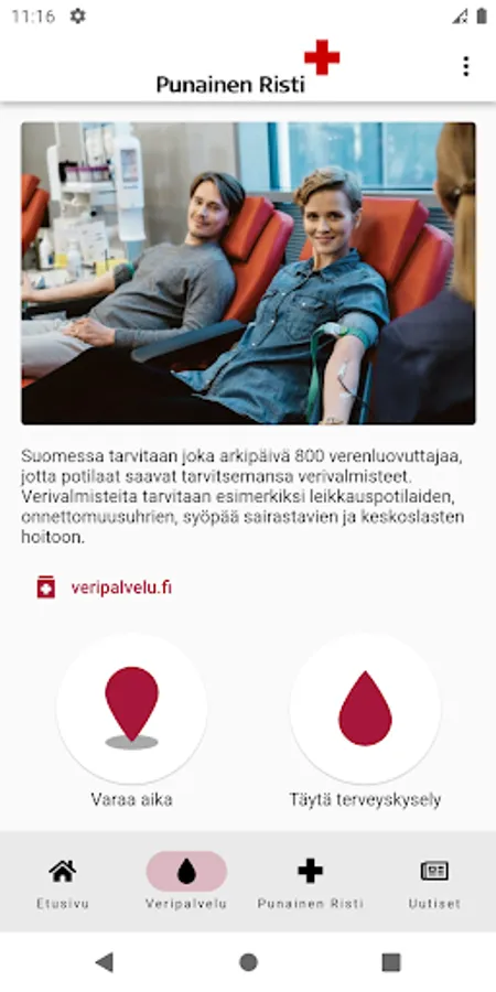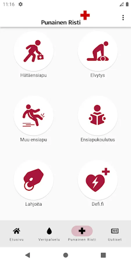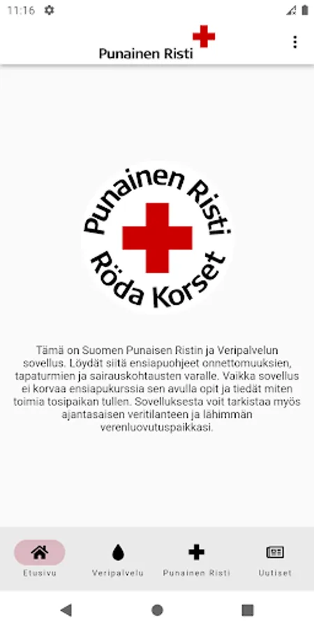 The new version of the Red Cross application focuses on the application's most popular features: first aid and blood donation. The Blood Service section will continue to have a blood situation and blood donation sites with sharing options and a fit donor test. It will no longer be possible to store your own data, so please retrieve your donation history.