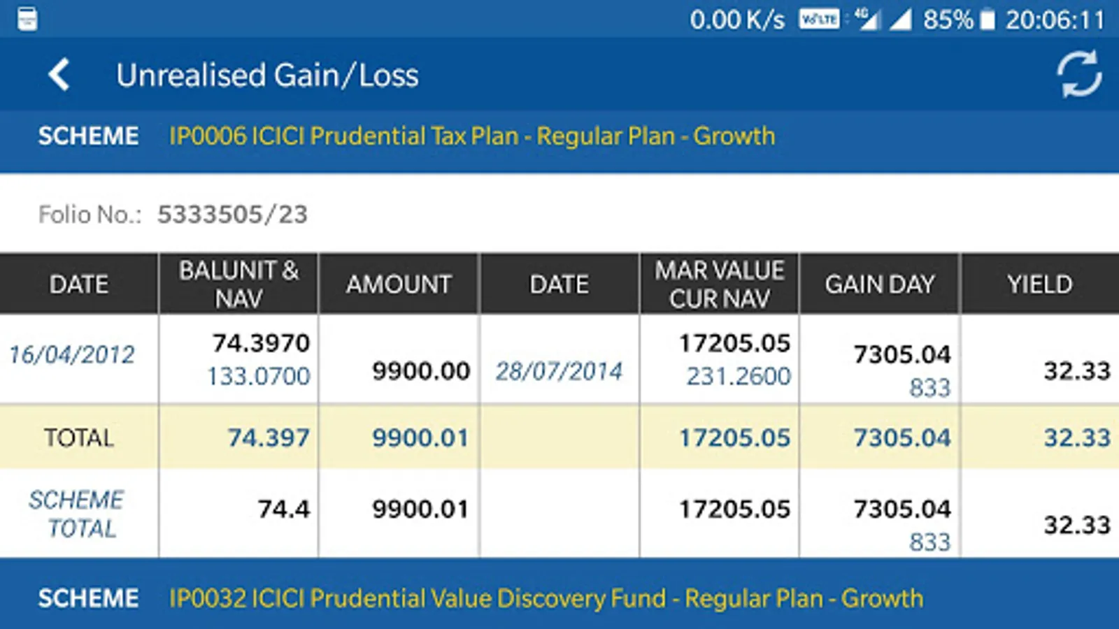 Realised/Unrealised Gain as per income tax return filing requirements.