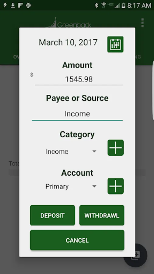 Greenback is an expense manager that is designed for the everyday user and allows people to easily record and keep track of income and expenses. Our goal in creating this app is to make sure that it is easy, quick, and comprehensive.