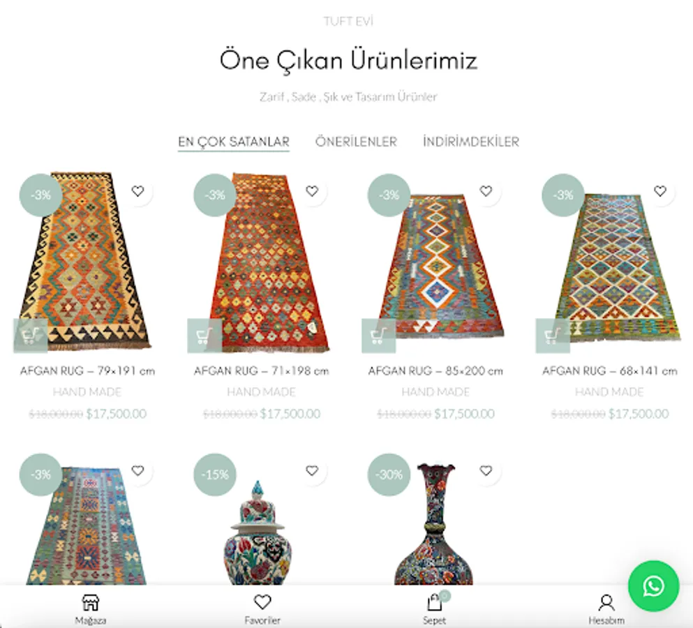 Tuft Evi is a company specializing in the sale of carpets and accessories since 2000. We help our customers transform the atmosphere of their homes and workplaces by providing them with a selection of high quality and unique carpets.