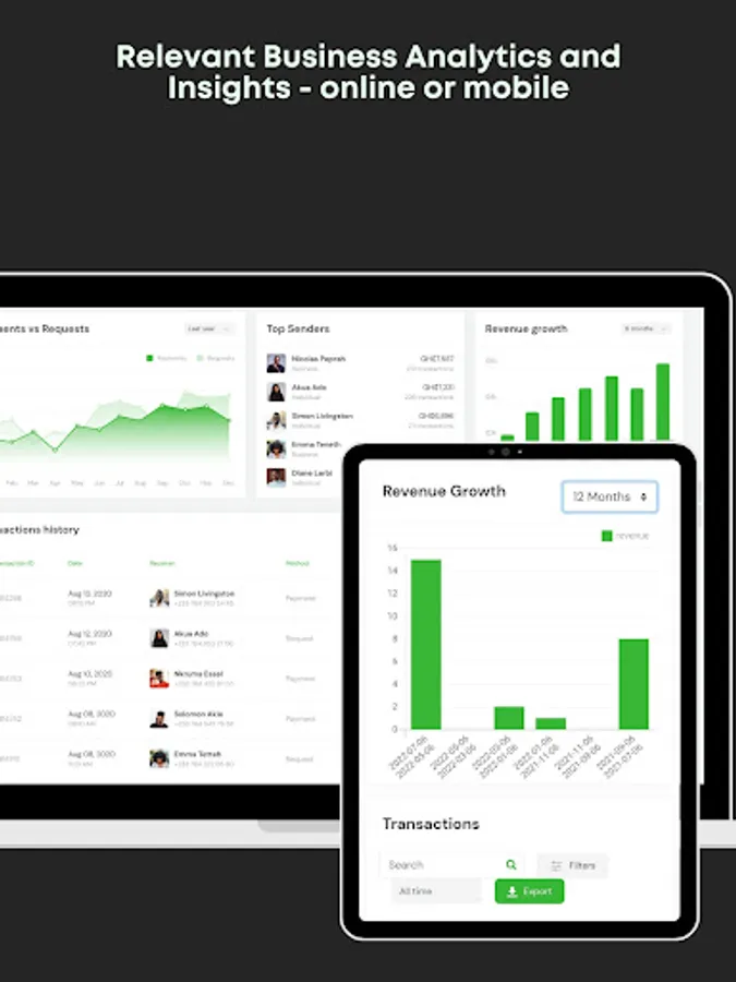 The Smartest Way to manage mobile money payments, invoice your customers, accept payments for invoices, and track business sales and payments.