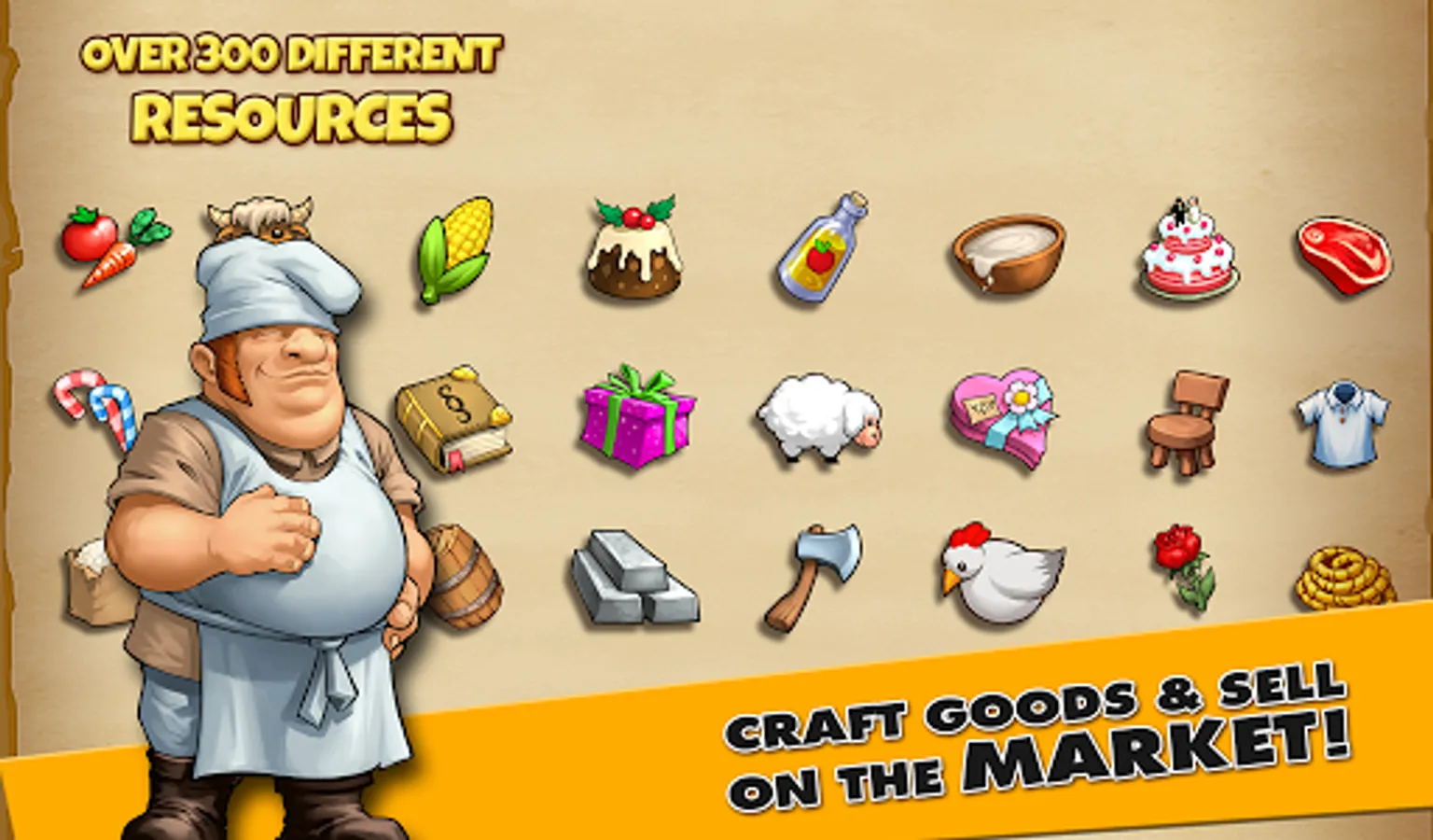 ⇒ craft hundreds of different goods and extend your resource production