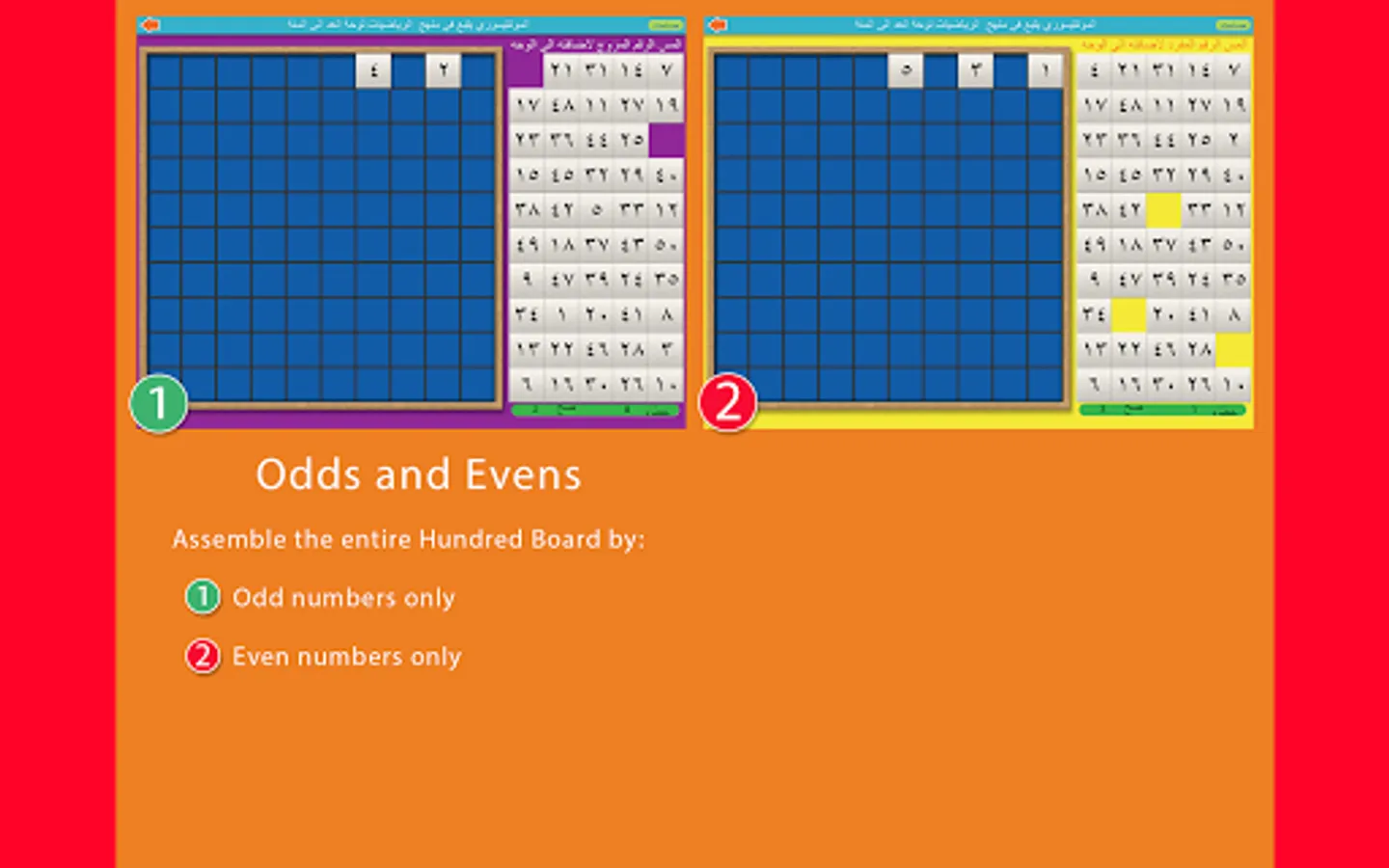 يجب ان يقوم الطفل بالبحث على العدد المناسب في الأرقام المجمعه على الجانب الأيمن. عندما يختار الرقم الصحيح ينقل تلقائيا الى مكانه على الوحه. سيكون مسرورا بالوقت الذي يستغرقه حتى النهاية