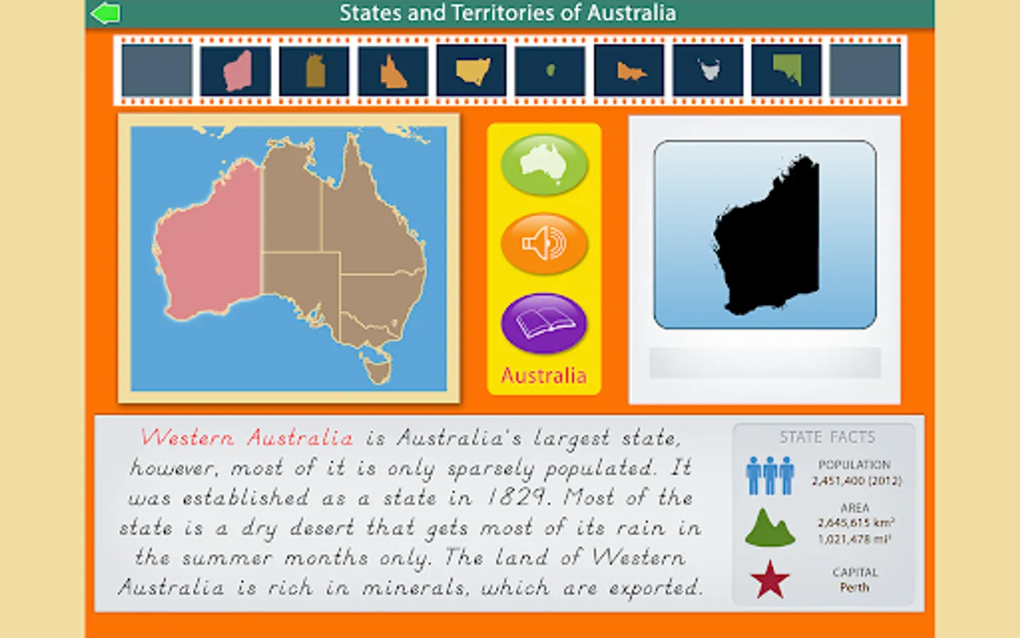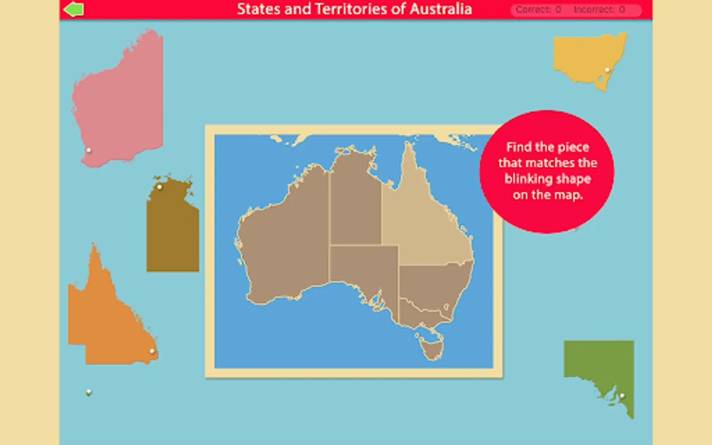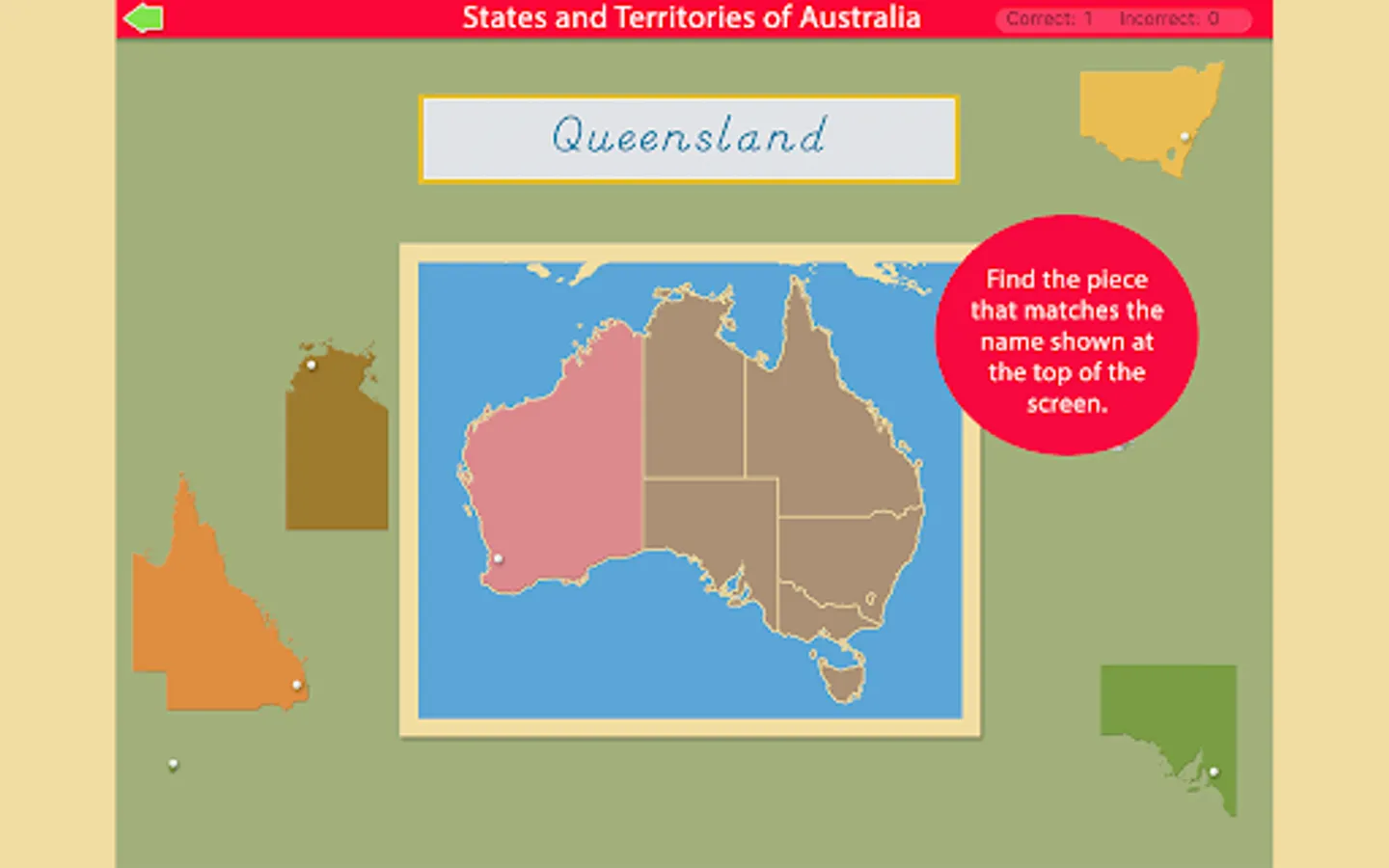 Learn the names and locations of the states and territories in Australia with this app that complements the geography materials used in the Montessori Classroom!