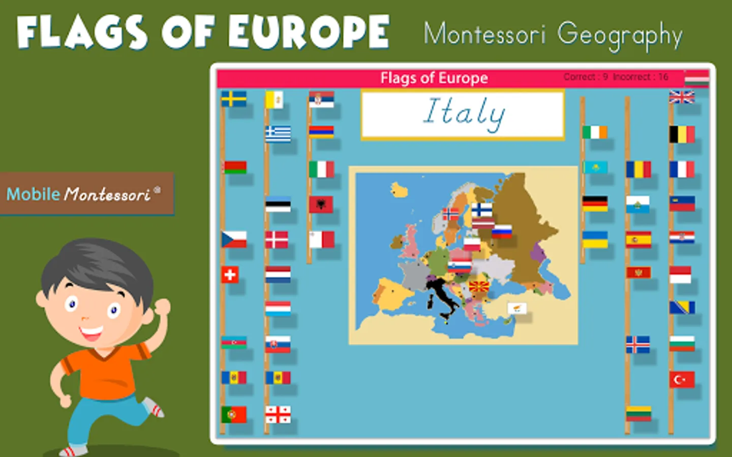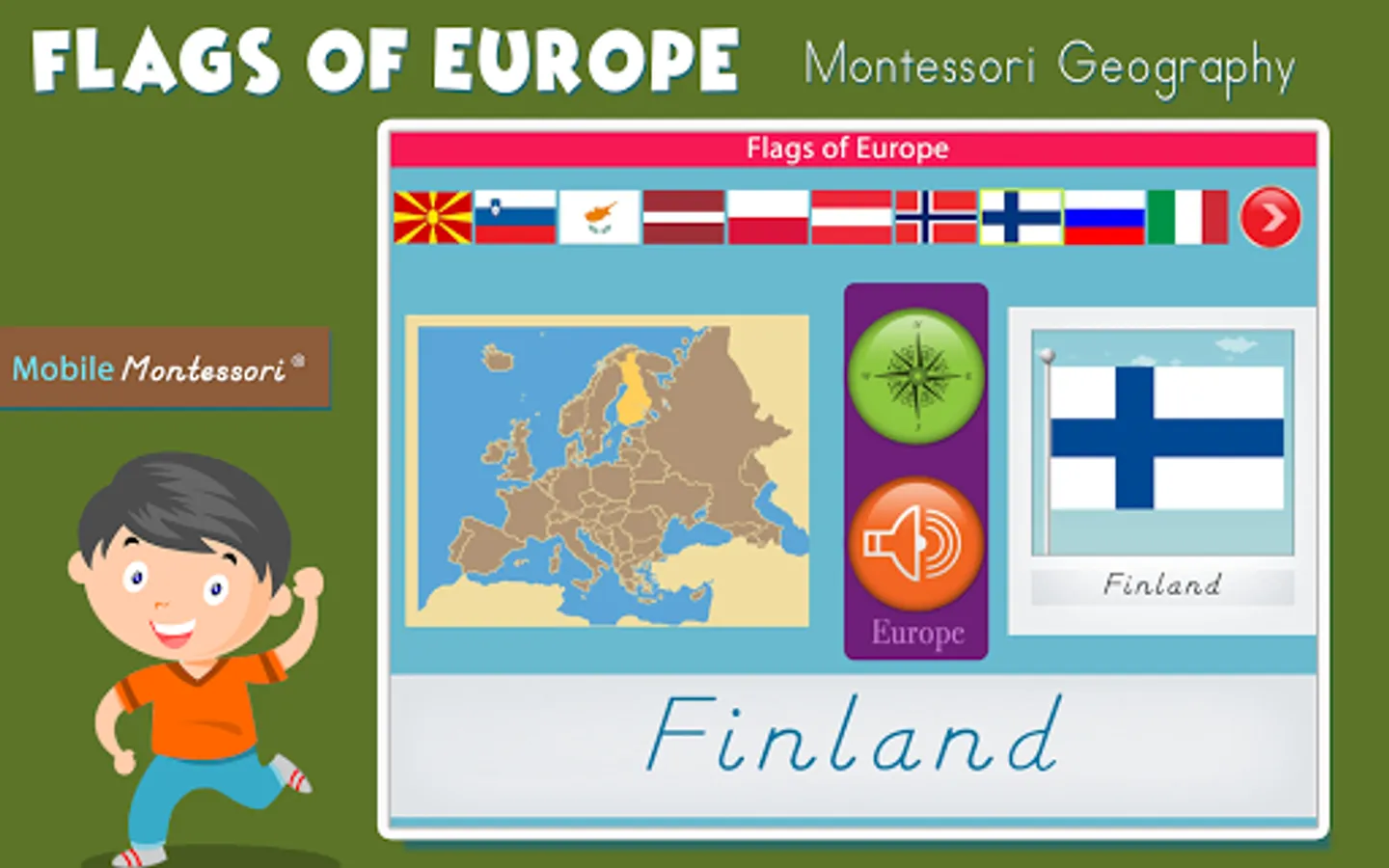 Learn to identify all the country flags of Europe with this app that beautifully complements the materials in the Montessori classroom!