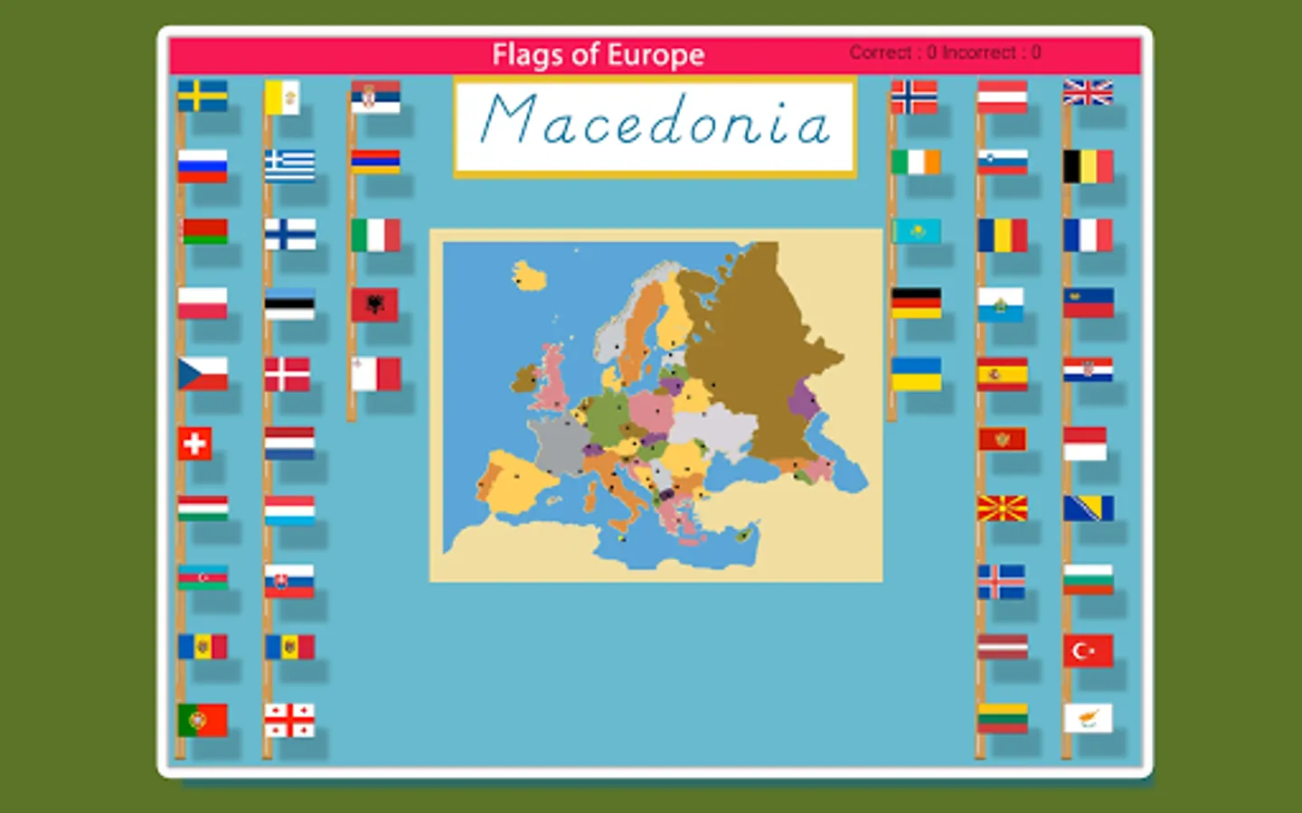 Once you are familiar with them, move on to the Pin Flag Map, where you will be required to identify the flag for each country. When you touch the correct pin flag, it will fly into position on the map, helping you to visualize and remember which country the flag represents!