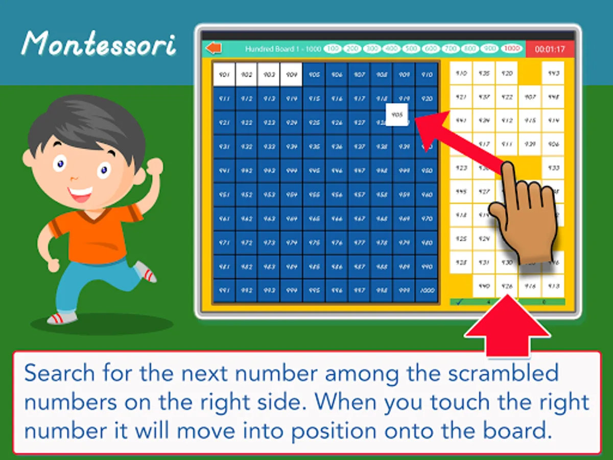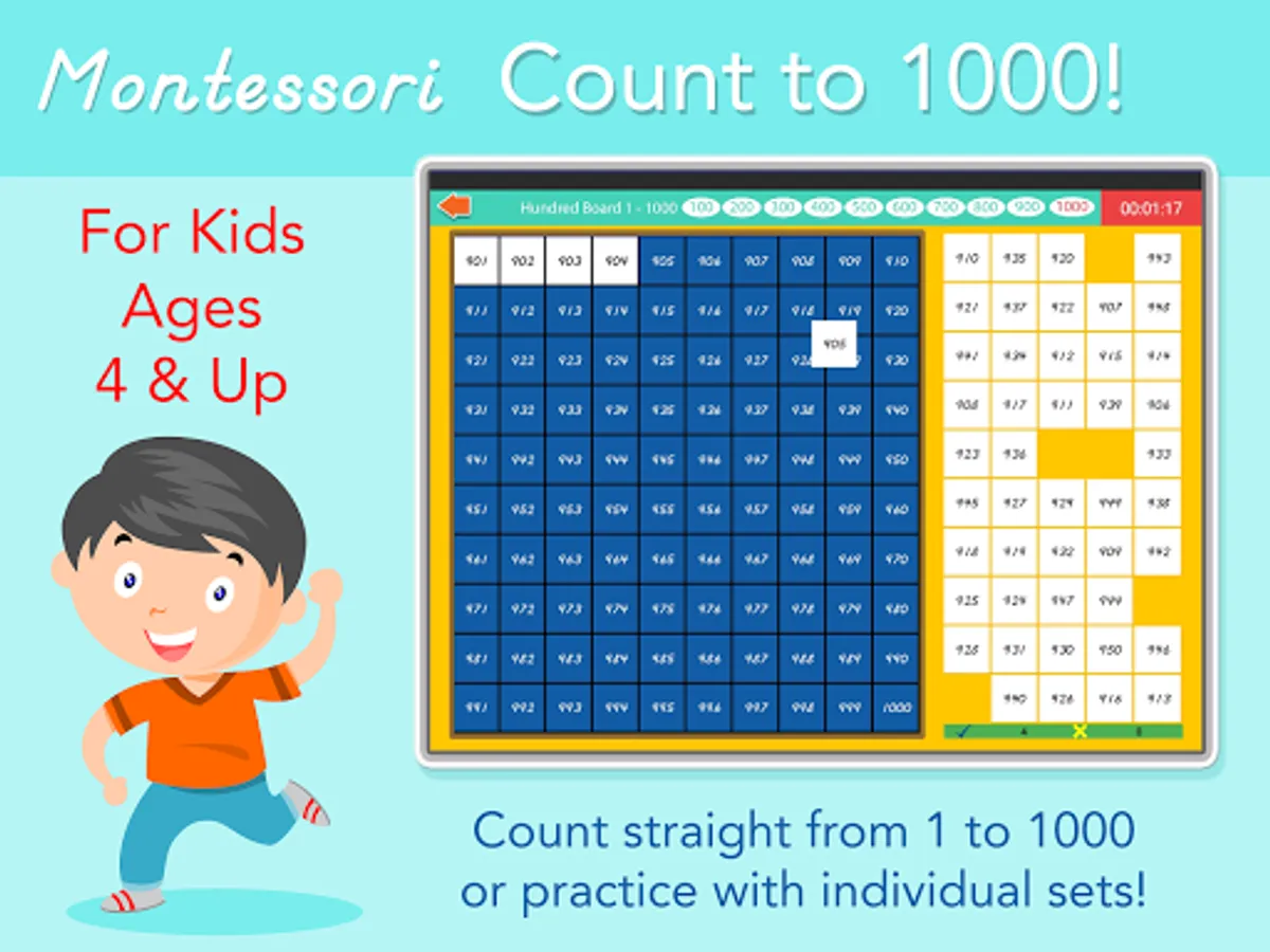 Use the famous Montessori Hundred board to practice counting to 1000!