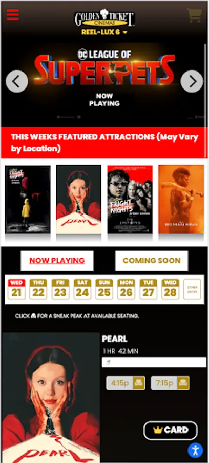 Introducing the all new Golden Ticket Cinemas App. Gain quick east access to the latest Hollywood blockbusters. Join our loyalty program and earn points on every purchase.