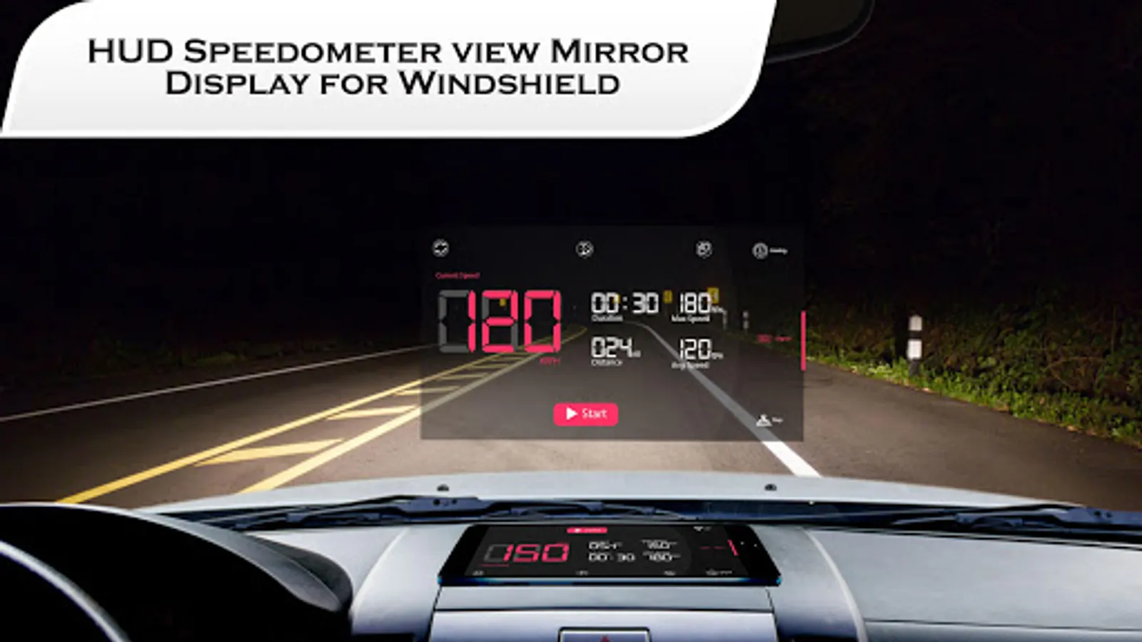 • Clearly heads up display of HUD speedometer for car speed meter app.