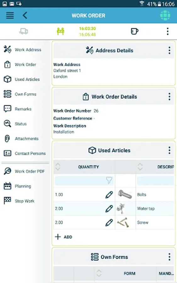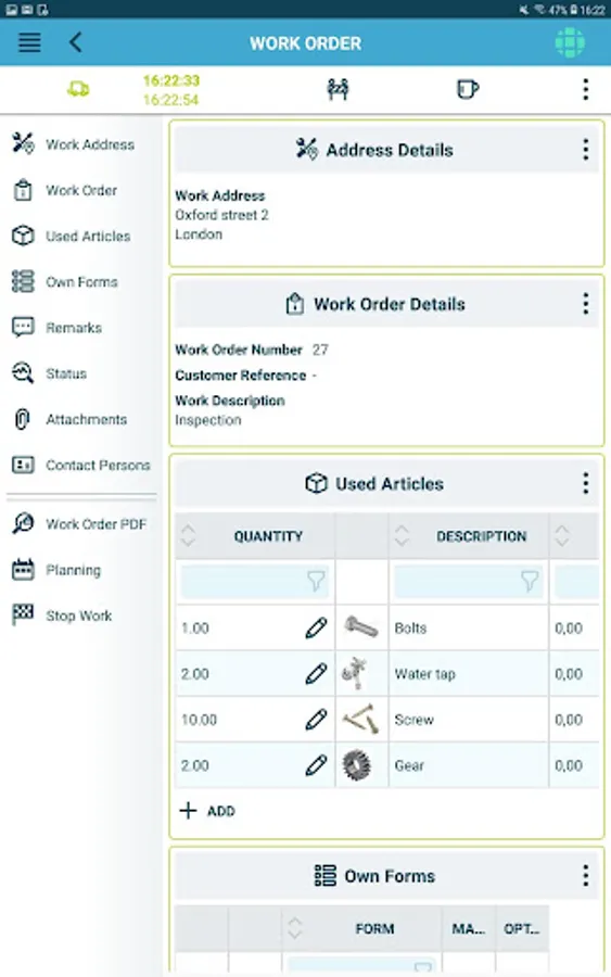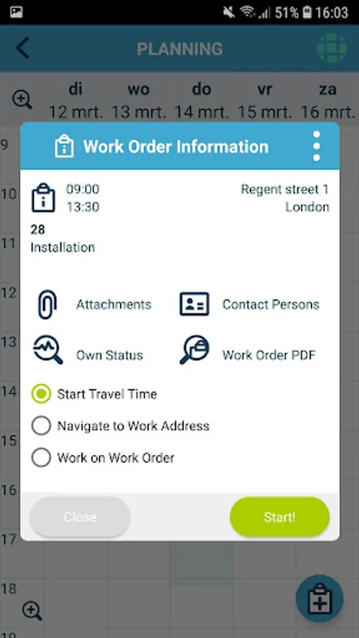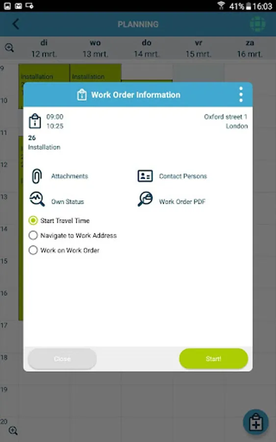 Avoid wasting time by navigating directly to your work address. Because you automatically build up history, you always have insight into previous visits to the same work address. This way you are always aware of agreements made and previous work. Thanks to the repeat planning option, you can easily add periodic maintenance at your customers to your work order. Fast and error-free communication between the office, the employees in the field and the customer ensures pleasant cooperation!