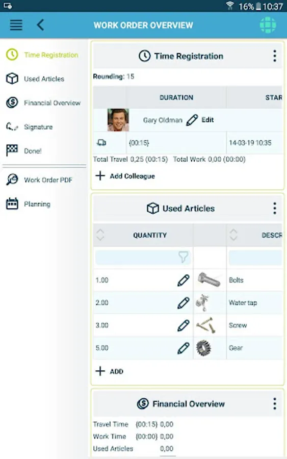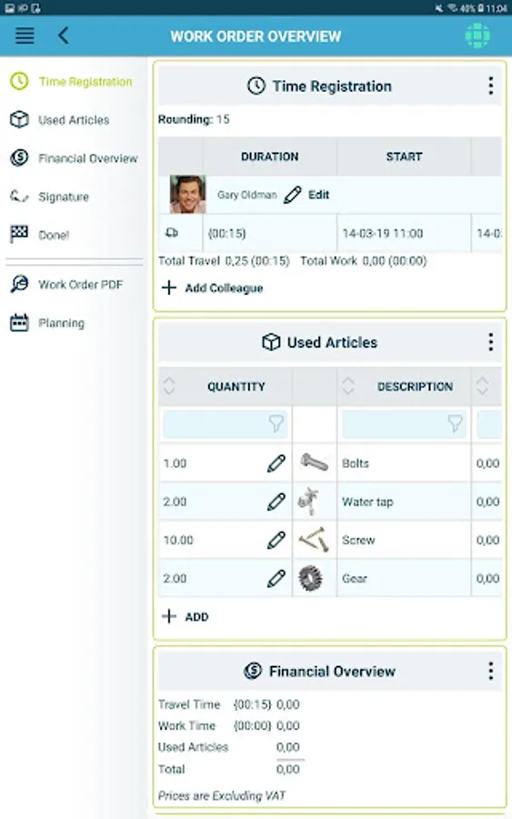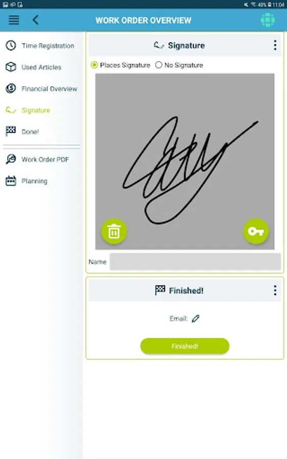 Creating and scheduling your work order is very simple, wherever and whenever you want: on the road or at the office. Automatically send an email or SMS to your customer after scheduling the work order. A change in the appointment? No problem. Inform your customer directly by e-mail or SMS. Add used materials to the work order by scanning the barcode, or do this manually. Moreover, simply book your hours and have your customer digitally sign the work order. We will then ensure that the work order is sent to your customer as a PDF.