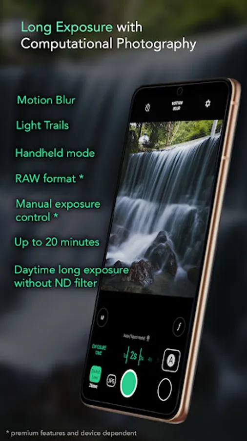 Motion ProCam is a camera app made for shooting long exposure easily. Simply adjust exposure time, hold still and shoot, Motion ProCam will auto align and produce a long exposure photo. It can be used during daytime without worrying the photos being overexposed and without ND filter.