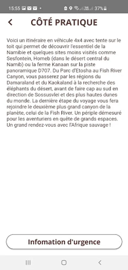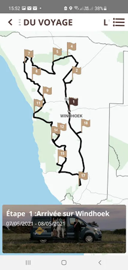 Accessible offline, the Nomade Aventure application maps your travel itinerary by covering all the elements of your program, step by step: accommodation, visits, airports, etc.