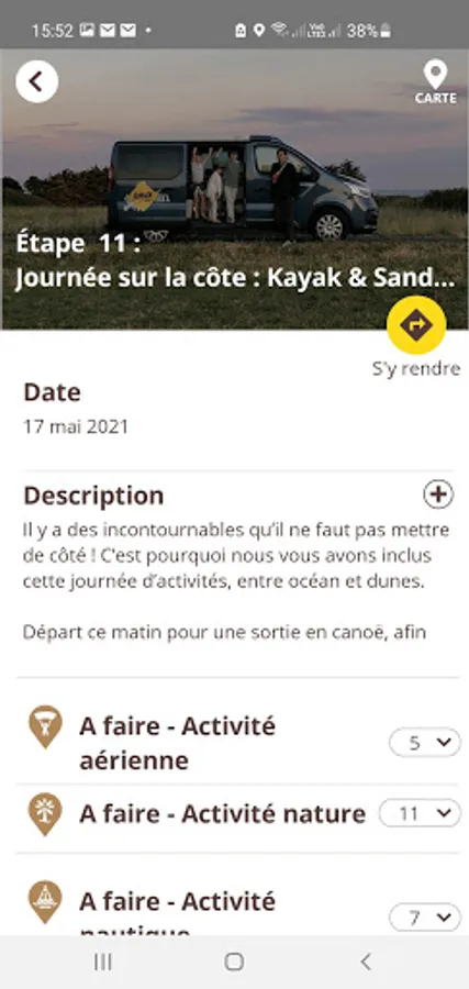 You will also find the most interesting sites of your route, other practices, as well as the best hikes, each time with all the detailed information. Also, all the good plans unearthed by our specialists and from our partners are present: experiences, activities, gourmet stops...