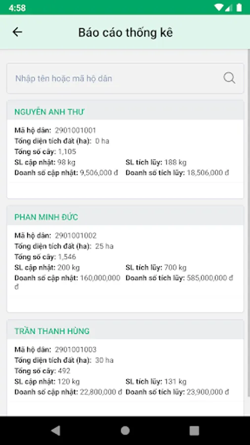 Farming and material area management software is developed and applied by Chips based on the combination of 3 objects: 1. Capital investment company, development and area management personnel, 2. Farming agent and 3. Farmer households.