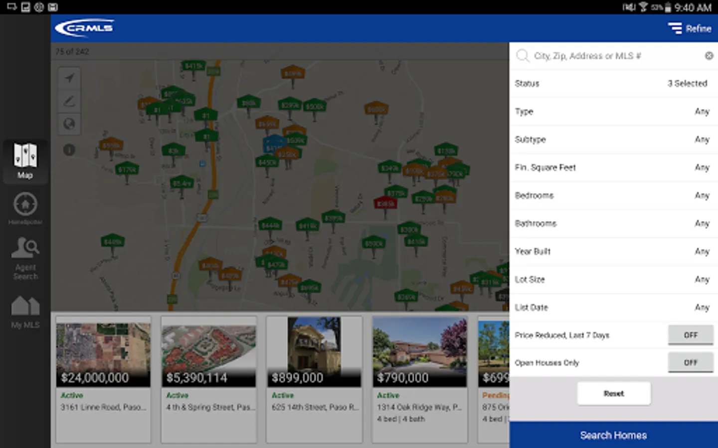 The CRMLS app, designed for agents who are members of California Regional MLS, provides on-the-go access to the CRMLS platform. An agent login is required.