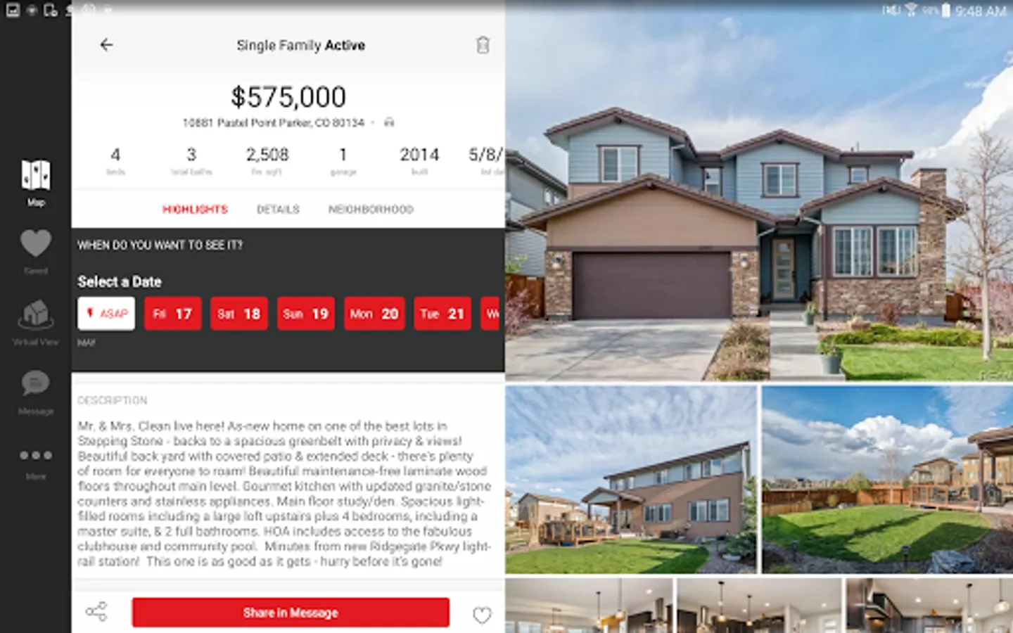Search single family, condos and town-homes for sale. Search homes for sale based on price, bedrooms, bathrooms, top rated schools or more. Search based on your current location, by address, or search for recently sold homes. Once you find a few homes you like, you can view detailed photos and updated info on homes that interest you. Try out the augmented realty features which allows you to view a house as if you were in front of it. Also save your searches and favorite homes then easily share them with your agent via text message, email, or even social media. You can even use our Mortgage Calculator to estimate the monthly payments for your new home. The Real Estate by RE/MAX of Boulder app makes house hunting painless and actually fun. As Boulder Valley's most accurate home search tool, this app is a must have for any home buyer.