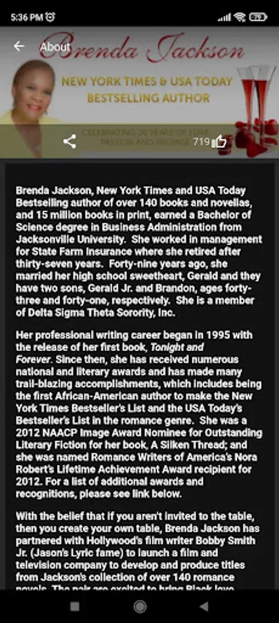 She has a fan page on Facebook and enjoy interacting with her readers in her national Brenda Jackson Book Club.