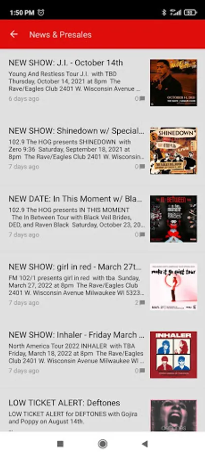 Use the mobile app to get concert information, watch interviews, view concert pictures, and more!
