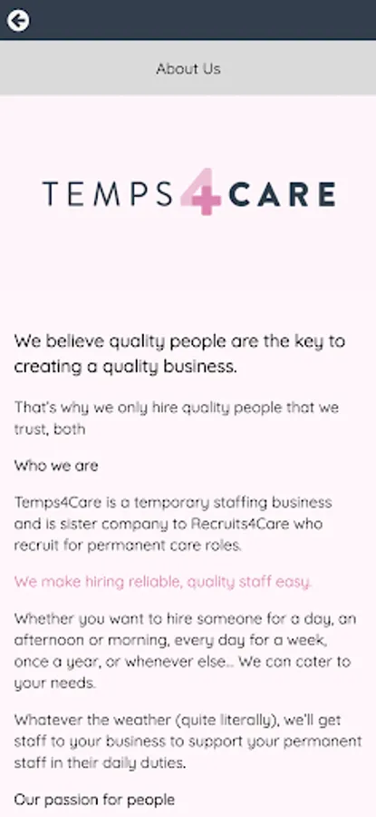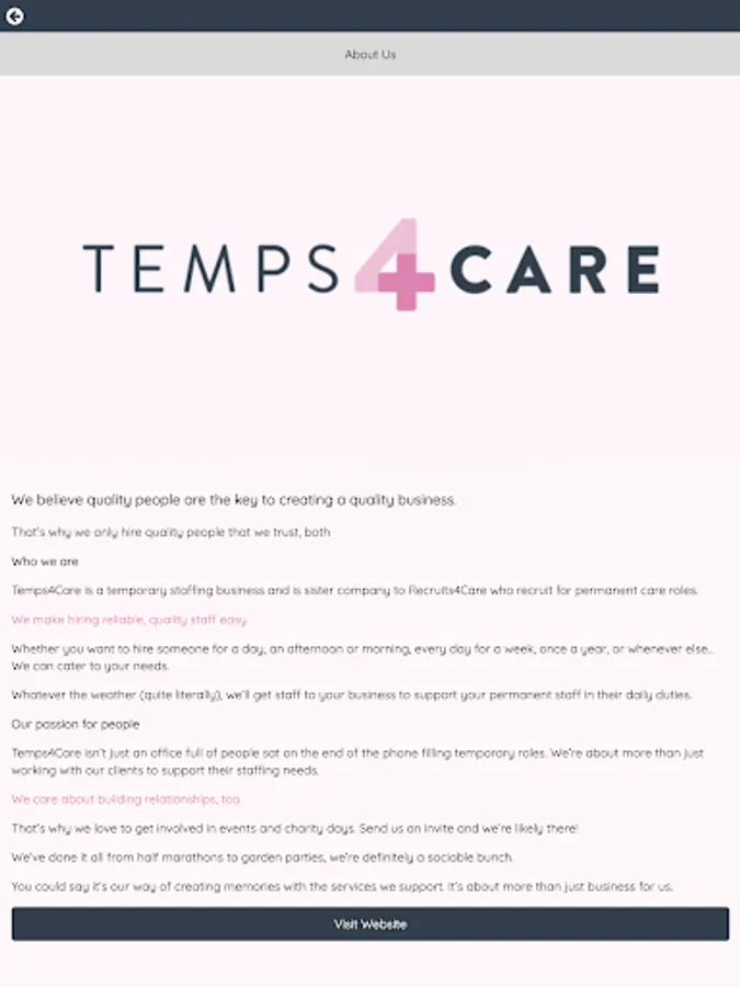 - Direct communication with Temps4Care through our ‘Chat’ function.