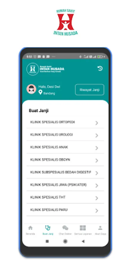 Aplikasi untuk pasien RS Intan Husada Memudahkan dalam membuat janji dan mengambil antrian juga mengecek jadwal dokter.